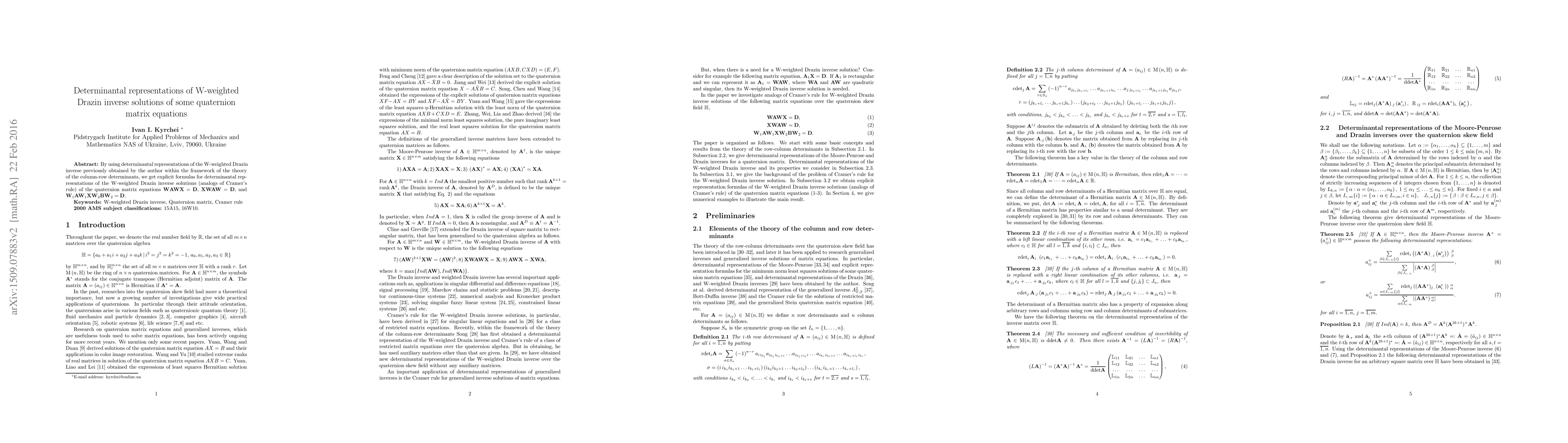 This paper presents determinantal representations for W-weighted Drazin inverse solutions of specific quaternion matrix equations using previously derived determinantal representations of the W-weighted Drazin inverse. It provides explicit formulas analogous to Cramer's rule for solving equations like ${\bf W}{\bf A}{\bf W}{\bf X}={\bf D}$.