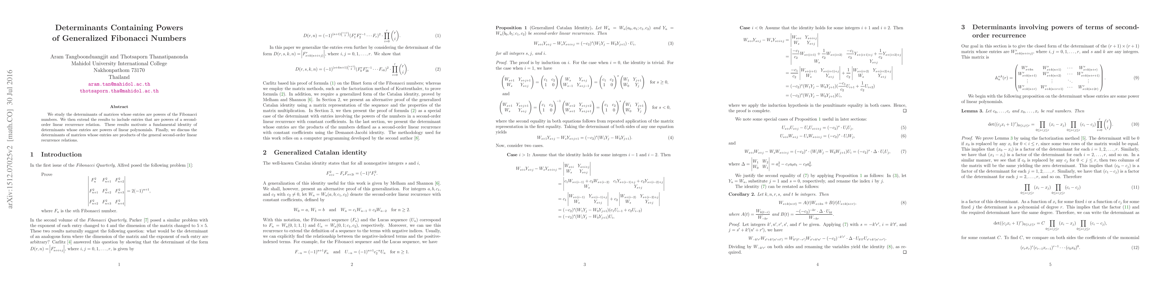 This paper explores determinants of matrices with entries as powers of Fibonacci and generalized Fibonacci numbers, revealing a fundamental identity involving powers of linear polynomials and extending to products of these numbers.