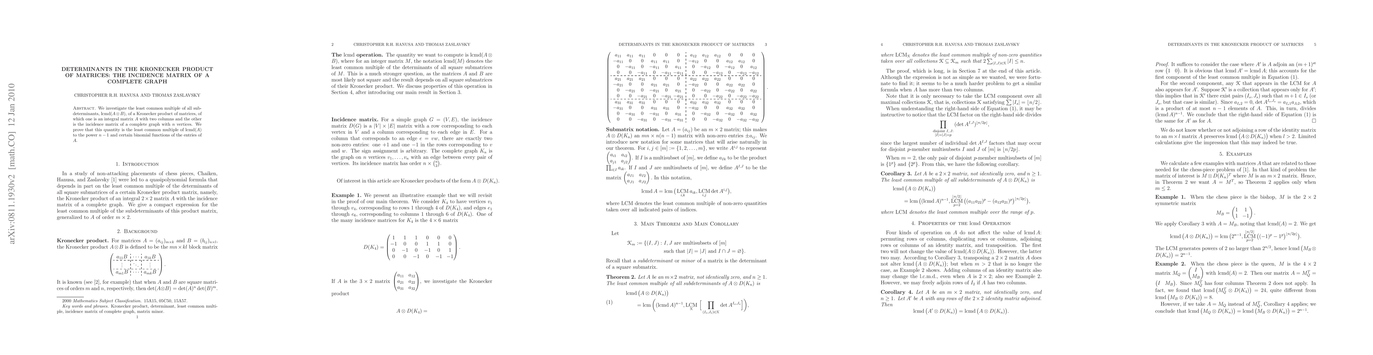 This paper explores the least common multiple of all subdeterminants of the Kronecker product of a matrix A with two columns and the incidence matrix of a complete graph. It proves that this quantity is the least common multiple of lcmd(A) raised to the power n-1 and specific binomial functions of A's entries.