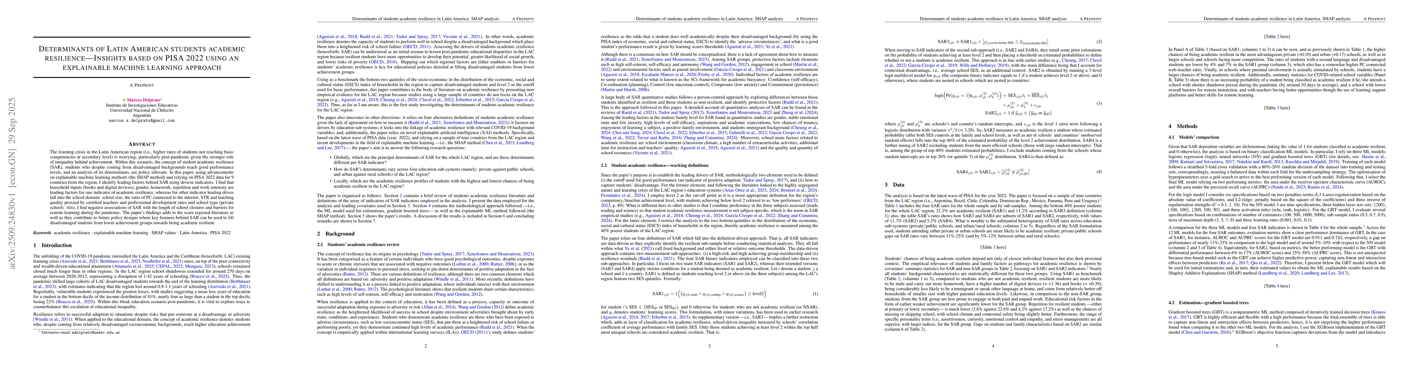 This research provides actionable insights for policymakers and educators to address educational inequalities and improve student outcomes in Latin America. Understanding the factors that contribute to academic resilience can help design targeted interventions that support vulnerable student populations.