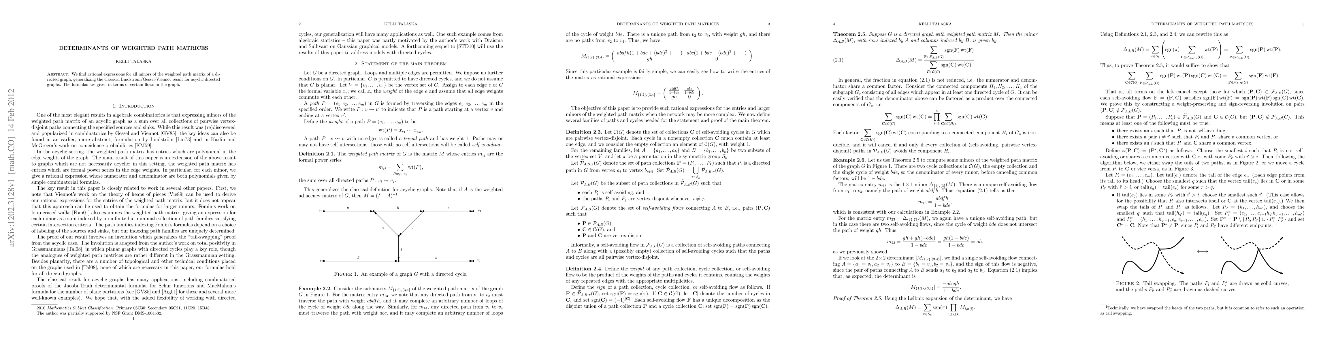 Researchers found rational expressions for all minors of a directed graph's weighted path matrix, extending a previous result to non-acyclic graphs.