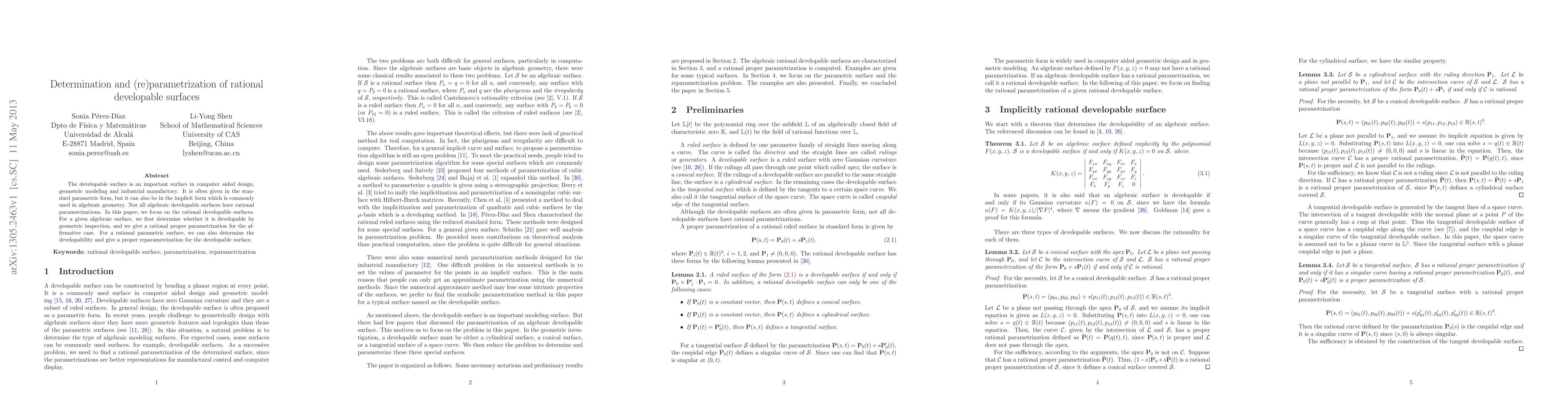 This paper investigates the determination and parametrization of rational developable surfaces in computer-aided design and geometric modeling. It provides methods to ascertain developability and offers rational parametrizations for developable surfaces, ensuring proper representation in both implicit and parametric forms.