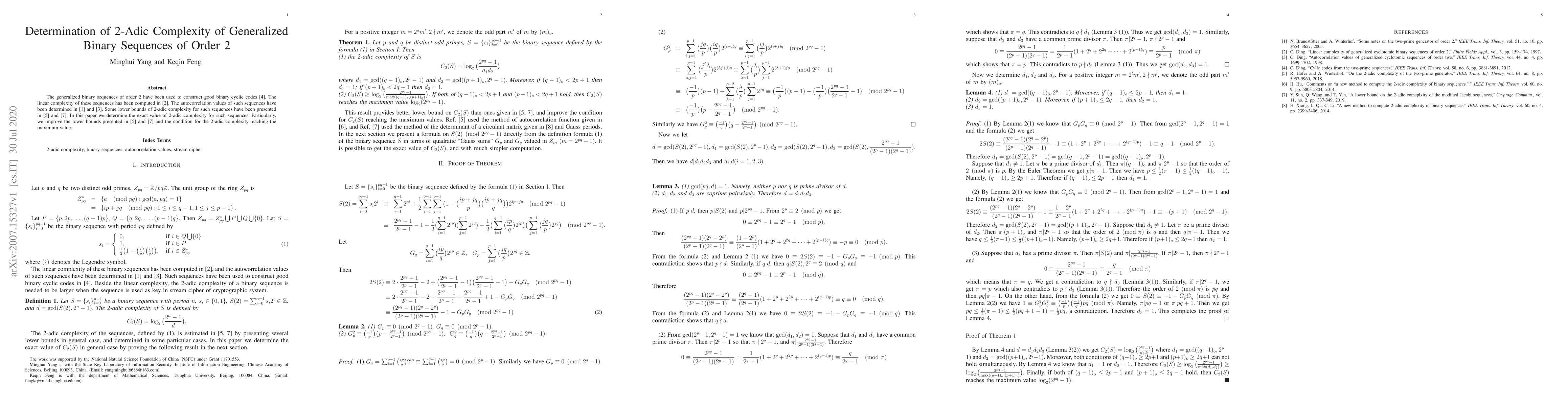 This paper determines the exact 2-adic complexity for generalized binary sequences of order 2, improving previous lower bounds and identifying conditions for maximum complexity. Prior studies have focused on linear complexity, autocorrelation, and initial lower bounds for 2-adic complexity.