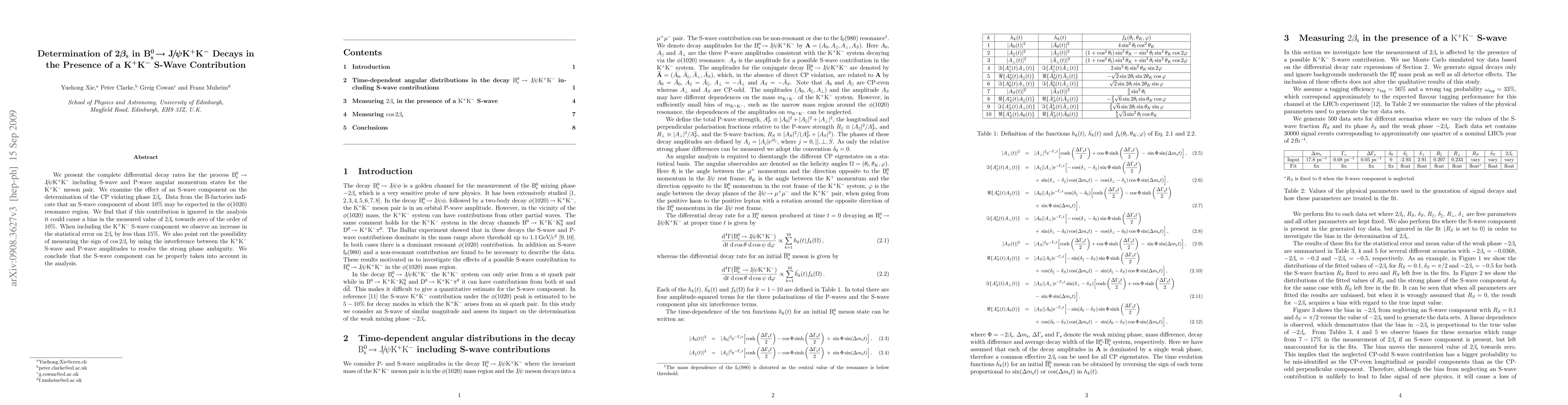We present the complete differential decay rates for the process B_s -> J/psi K^+ K^- including S-wave and P-wave angular momentum states for the K^+ K^- meson pair. We examine the effect of an S-wave component on the determination of the CP violating phase 2beta_s. Data from the B-factories indicate that an S-wave component of about 10% may be expected in the phi(1020) resonance region. We find that if this contribution is ignored in the analysis it could cause a bias in the measured value of 2beta_s towards zero of the order of 10%. When including the K^+K^- S-wave component we observe an increase in the statistical error on 2beta_s by less than 15%. We also point out the possibility of measuring the sign of cos2beta_s by using the interference between the K^+K^- S-wave and P-wave amplitudes to resolve the strong phase ambiguity. We conclude that the S-wave component can be properly taken into account in the analysis.
