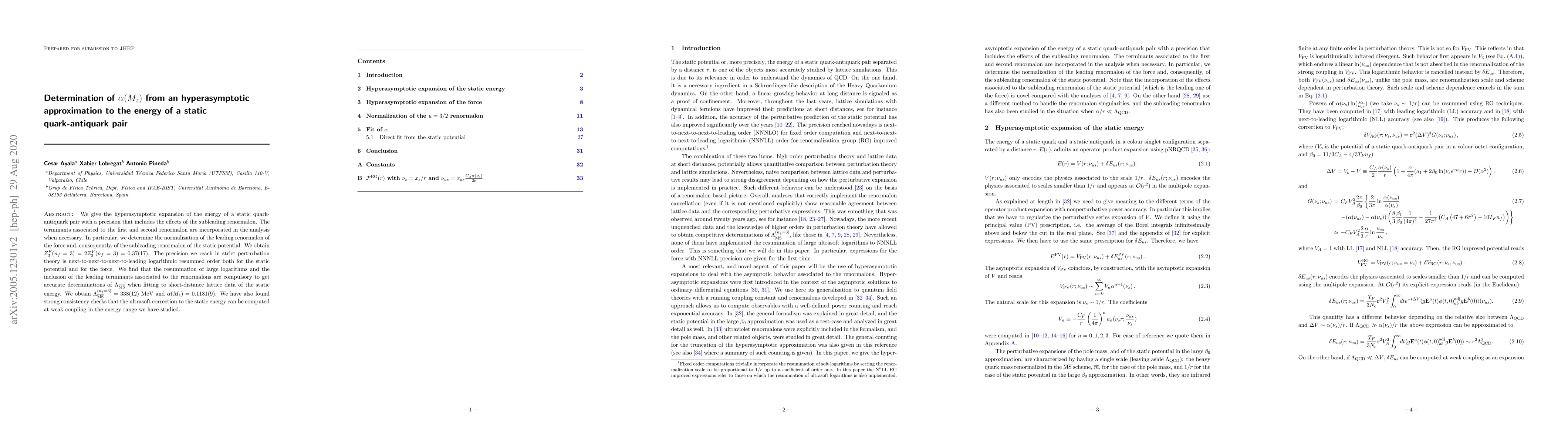 This paper provides a hyperasymptotic expansion for the energy of a static quark-antiquark pair, incorporating effects of subleading renormalons. It determines $\alpha(M_z)$ to be $0.1181(9)$, emphasizing the necessity of resummation of large logarithms and leading terminants for accurate determinations.