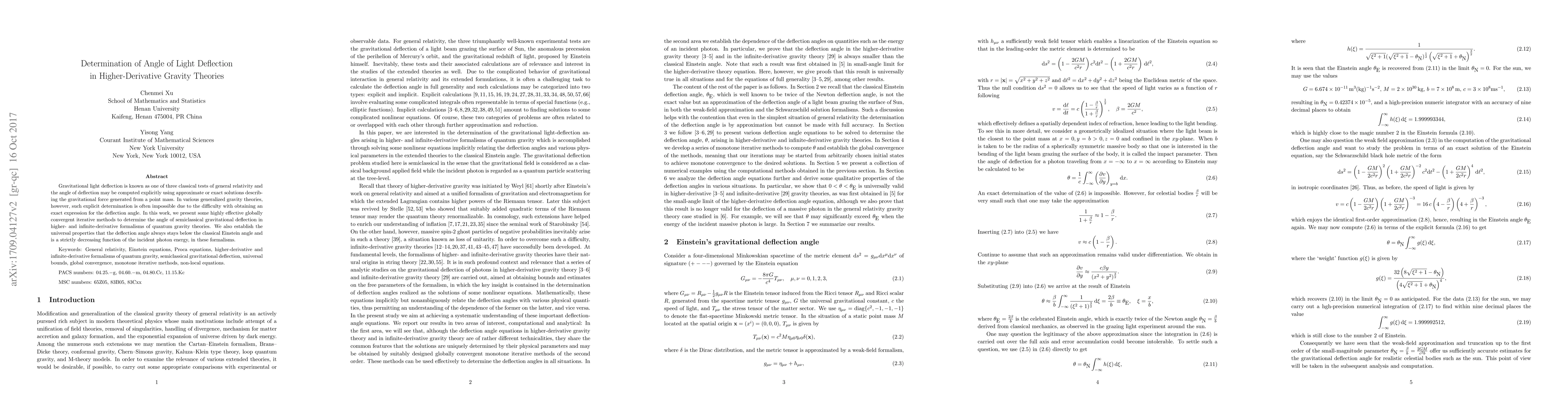 This paper develops globally convergent iterative methods to determine the angle of light deflection in higher-derivative gravity theories, showing that the deflection angle remains below the classical Einstein angle and decreases with incident photon energy.