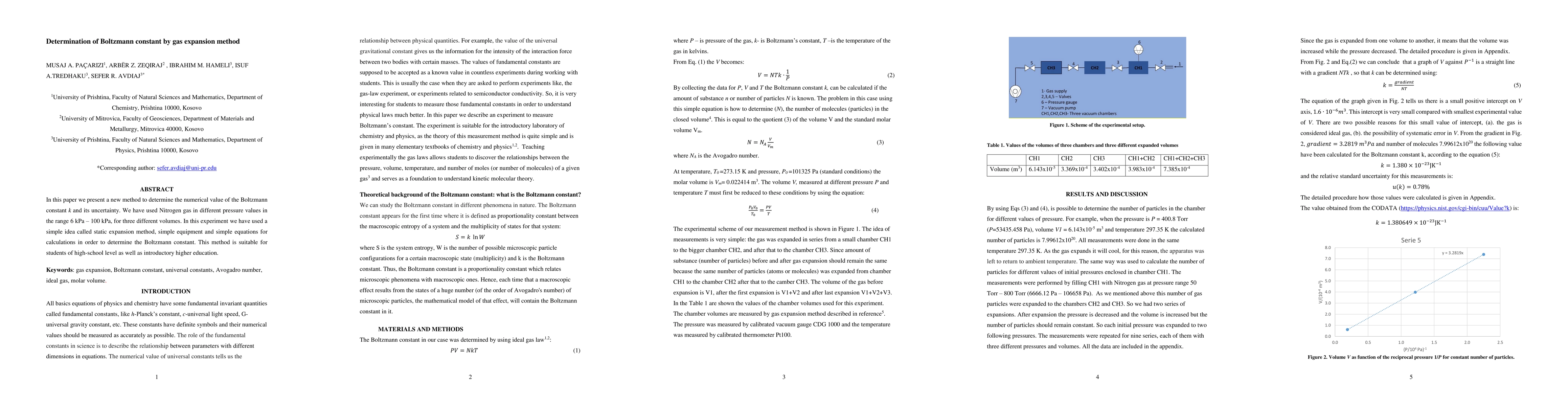 This paper introduces a novel method to determine the Boltzmann constant using nitrogen gas expansion at varying pressures and volumes, employing a straightforward static expansion technique and basic equipment to achieve precise measurements. The study also quantifies the uncertainty associated with the derived value of the Boltzmann constant.