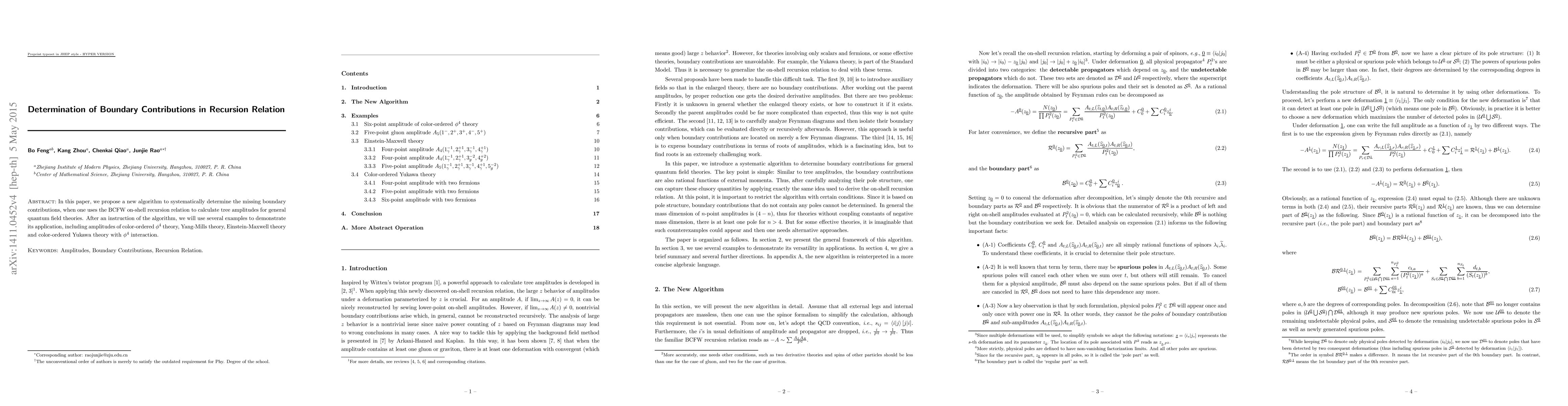 In this paper, we propose a new algorithm to systematically determine the missing boundary contributions, when one uses the BCFW on-shell recursion relation to calculate tree amplitudes for general quantum field theories. After an instruction of the algorithm, we will use several examples to demonstrate its application, including amplitudes of color-ordered phi-4 theory, Yang-Mills theory, Einstein-Maxwell theory and color-ordered Yukawa theory with phi-4 interaction.