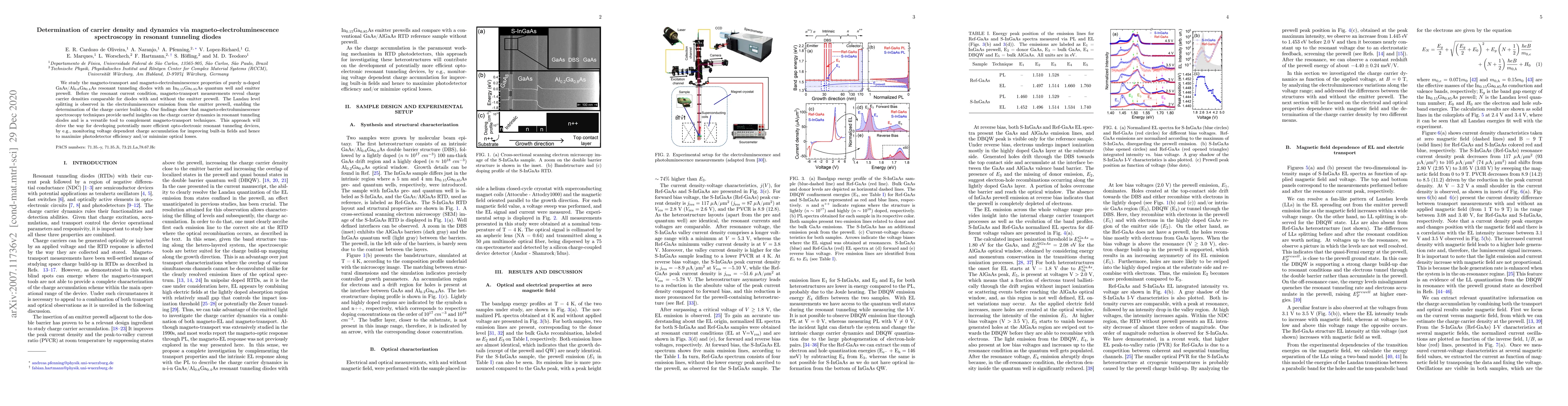This paper investigates the carrier density and dynamics in n-doped GaAs/Al$_{0.6}$Ga$_{0.4}$As resonant tunneling diodes using magneto-electroluminescence spectroscopy, revealing comparable charge carrier densities and Landau level splitting in diodes with and without an emitter prewell. The study highlights the potential of magneto-electroluminescence for optimizing opto-electronic devices.