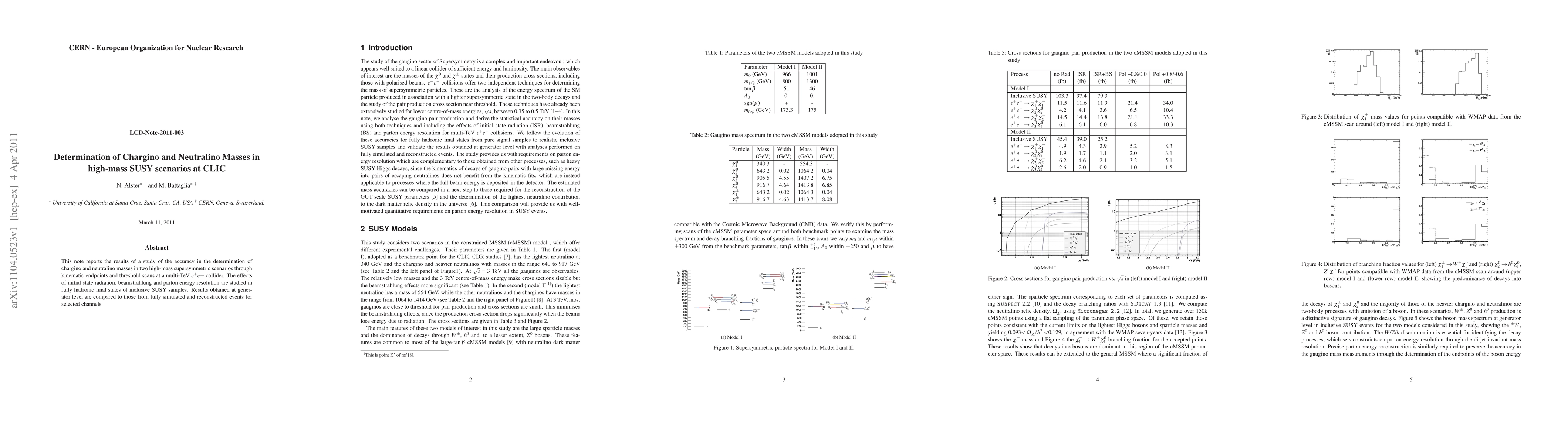 This note reports the results of a study of the accuracy in the determination of chargino and neutralino masses in two high-mass supersymmetric scenarios through kinematic endpoints and threshold scans at a multi-TeV e+e- collider. The effects of initial state radiation, beamstrahlung and parton energy resolution are studied in fully hadronic final states of inclusive SUSY samples. Results obtained at generator level are compared to those from fully simulated and reconstructed events for selected channels.