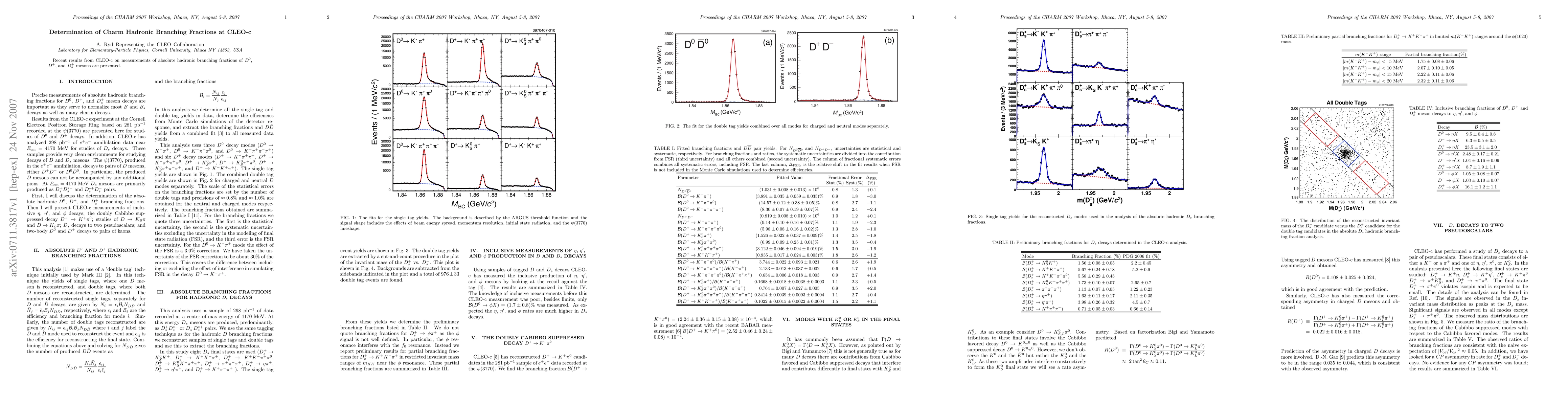 The paper presents advanced techniques for measuring hadronic branching fractions of charm mesons using singletag and doubletag analyses, along with inclusive measurements of η, η', and φ production in D_s decays.