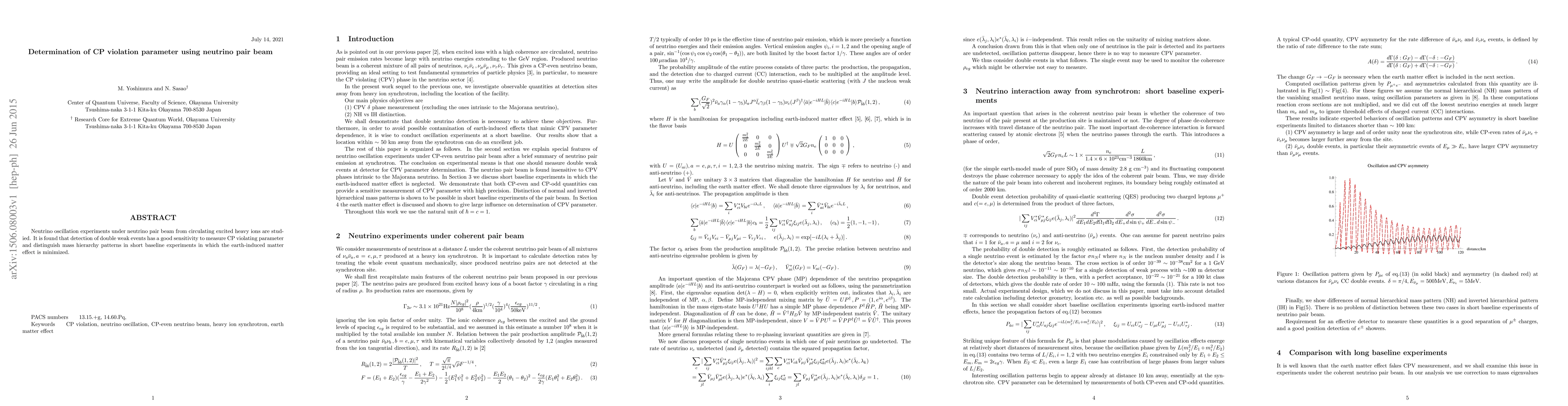 Neutrino oscillation experiments under neutrino pair beam from circulating excited heavy ions are studied. It is found that detection of double weak events has a good sensitivity to measure CP violating parameter and distinguish mass hierarchy patterns in short baseline experiments in which the earth-induced matter effect is minimized.