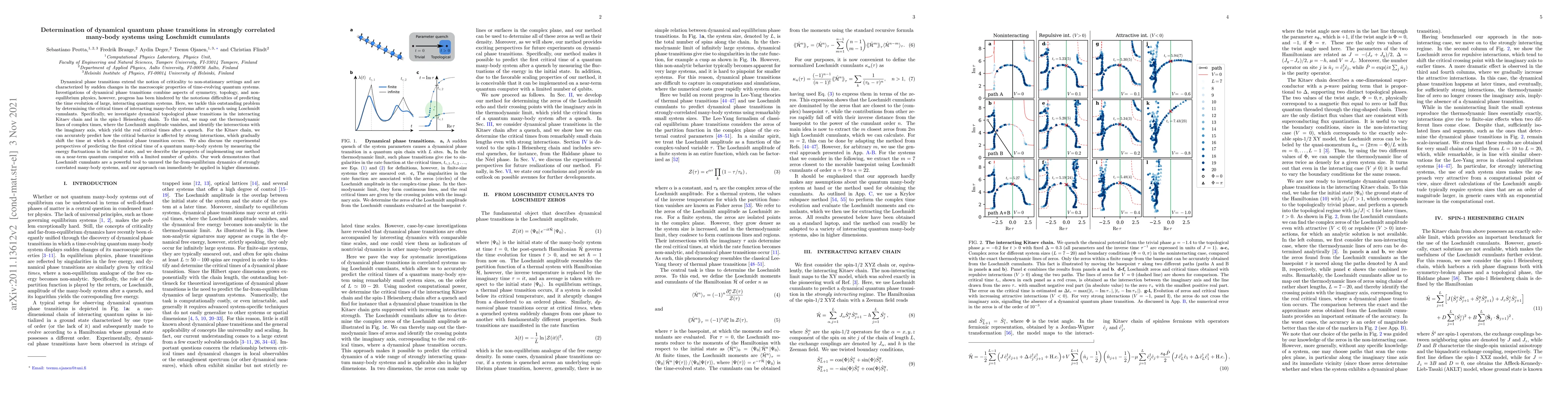 This paper investigates dynamical quantum phase transitions in strongly correlated many-body systems using Loschmidt cumulants, demonstrating their effectiveness in predicting critical times after a quench in systems like the Kitaev chain and spin-1 Heisenberg chain. The method also discusses experimental and quantum computing prospects for measuring these transitions.