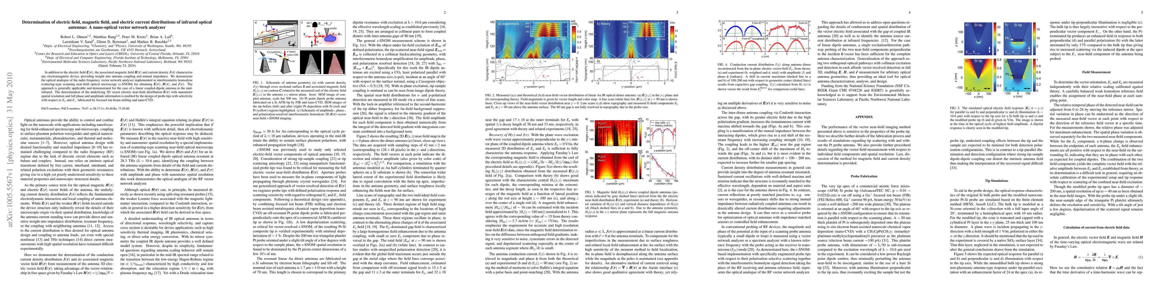 In addition to the electric field E(r), the associated magnetic field H(r) and current density J(r) characterize any electromagnetic device, providing insight into antenna coupling and mutual impedance. We demonstrate the optical analogue of the radio frequency vector network analyzer implemented in interferometric homodyne scattering-type scanning near-field optical microscopy (s-SNOM) for obtaining E(r), H(r), and J(r). The approach is generally applicable and demonstrated for the case of a linear coupled-dipole antenna in the mid-infrared. The determination of the underlying 3D vector electric near-field distribution E(r) with nanometer spatial resolution and full phase and amplitude information is enabled by the design of probe tips with selectivity with respect to E-parallel and E-perpendicular fabricated by focused ion-beam milling and nano-CVD.