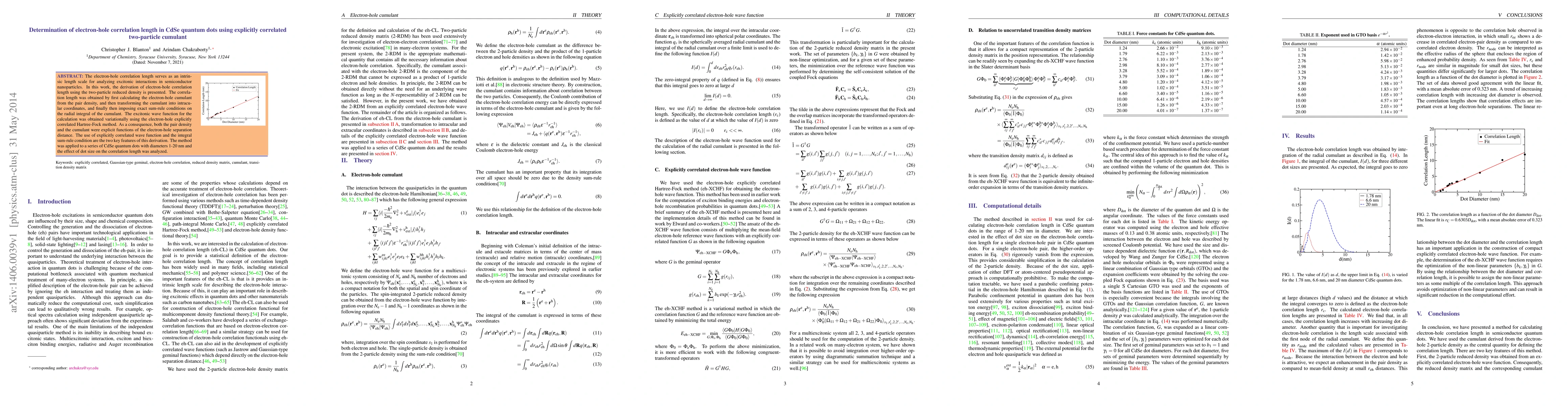 This paper determines the electron-hole correlation length in CdSe quantum dots using an explicitly correlated two-particle cumulant method, revealing the intrinsic length scale for excitonic interactions. The method applies exact sum-rule conditions and uses an explicitly correlated Hartree-Fock wave function, analyzing the correlation length's dependence on quantum dot size.