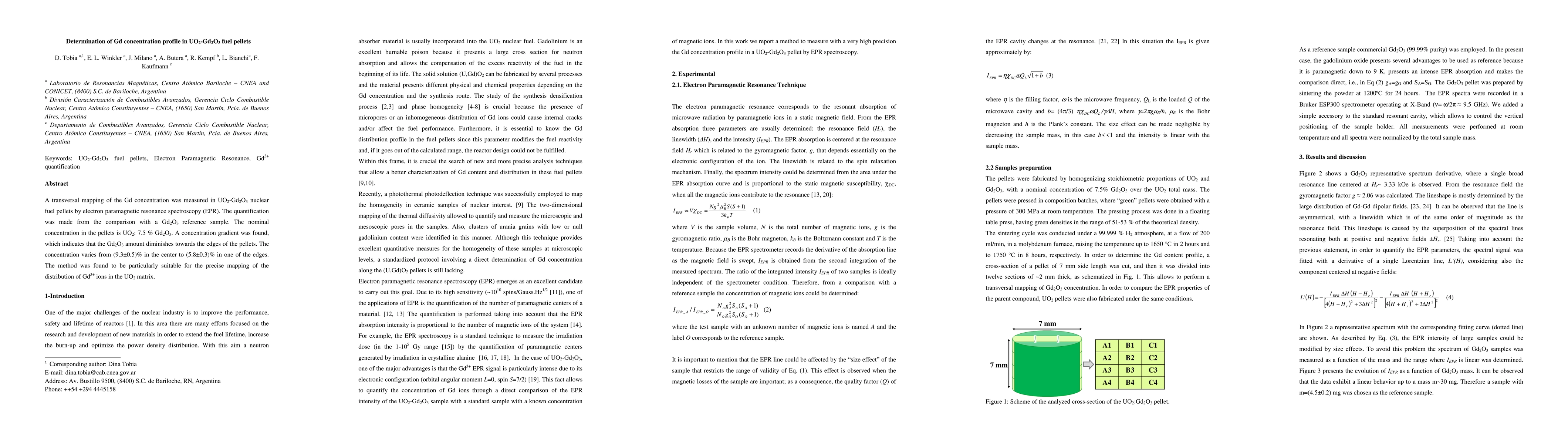 Researchers used electron paramagnetic resonance spectroscopy to map Gd concentration in UO2-Gd2O3 fuel pellets, finding a concentration gradient that decreases towards the edges of the pellets.