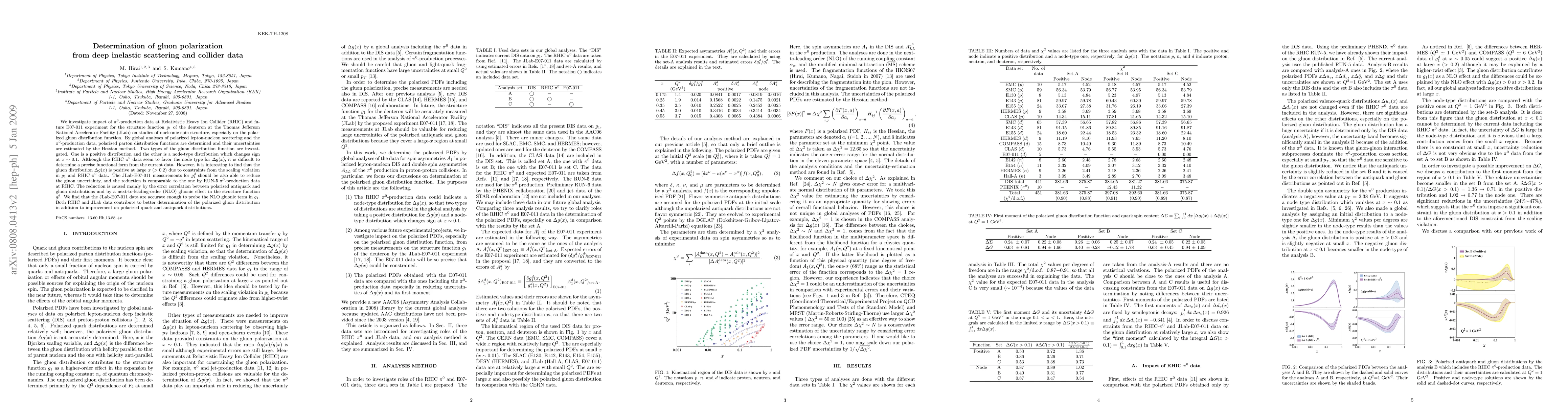 This paper determines the gluon polarization from deep inelastic scattering and collider data, finding that RHIC $\pi^0$ data favor a node-type gluon distribution. The JLab-E07-011 experiment is expected to further reduce uncertainties in the polarized gluon distribution, comparable to the impact of RHIC's RUN-5 $\pi^0$ data.