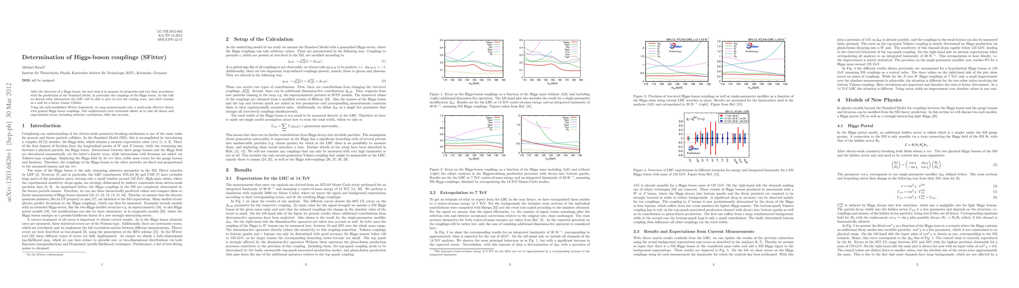 This paper discusses the use of the SFitter framework to determine the Higgs boson couplings, aiming to measure its properties and test their consistency with Standard Model predictions. The study highlights the potential of the LHC to provide insights over the next few years and identifies future tasks for a Linear Collider.