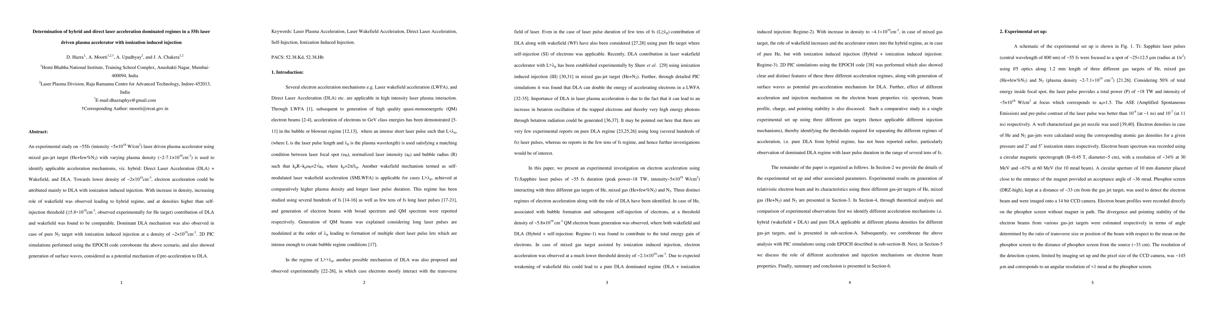 This study investigates the acceleration regimes in a 55fs laser-driven plasma accelerator using mixed gas-jet targets, identifying Direct Laser Acceleration (DLA) and wakefield effects. At lower densities, DLA with ionization-induced injection dominates, while higher densities lead to a hybrid regime where wakefield contributions increase.