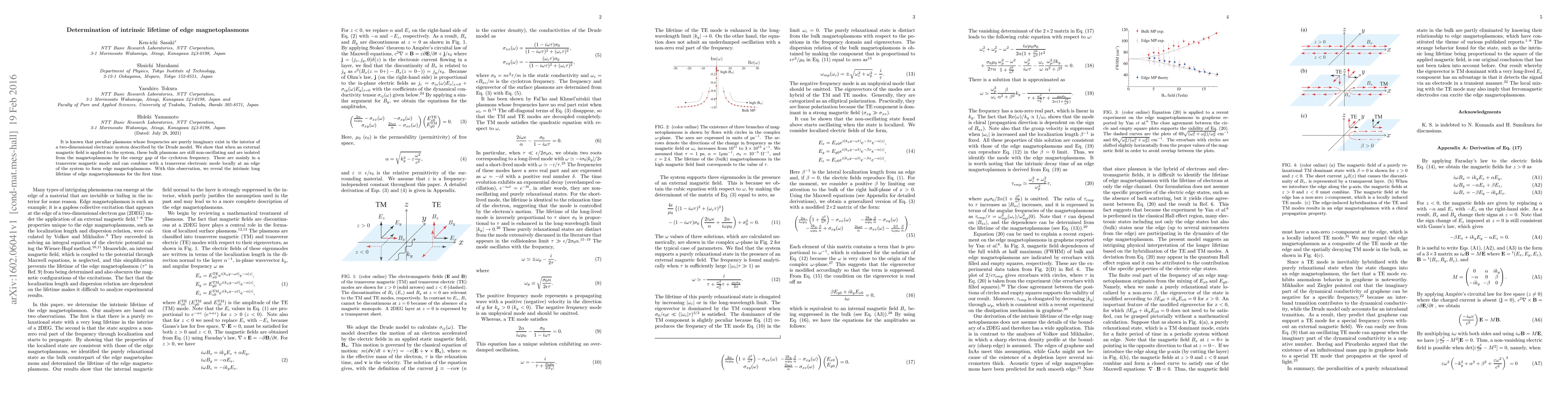 It is known that peculiar plasmons whose frequencies are purely imaginary exist in the interior of a two-dimensional electronic system described by the Drude model. We show that when an external magnetic field is applied to the system, these bulk plasmons are still non-oscillating and are isolated from the magnetoplasmons by the energy gap of the cyclotron frequency. These are mainly in a transverse magnetic mode and can combine with a transverse electronic mode locally at an edge of the system to form edge magnetoplasmons. With this observation, we reveal the intrinsic long lifetime of edge magnetoplasmons for the first time.