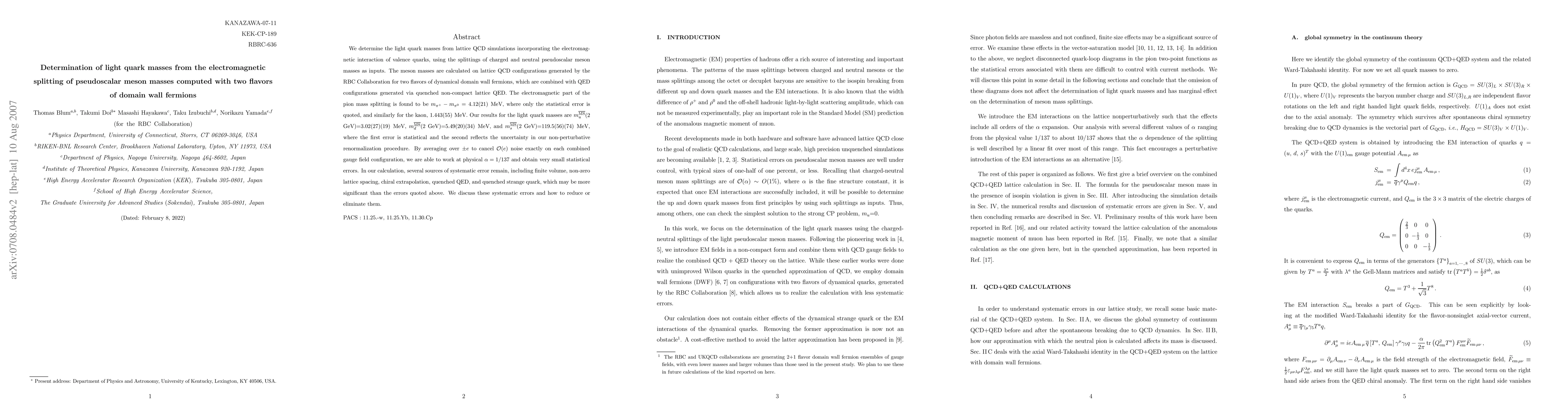 We determine the light quark masses from lattice QCD simulations incorporating the electromagnetic interaction of valence quarks. The meson masses are calculated on lattice QCD configurations generated by the RBC Collaboration for two flavors of dynamical domain wall fermions, which are combined with QED configurations generated via quenched non-compact lattice QED. The electromagnetic part of the pion mass splitting is found to be $m_{\pi^+}-m_{\pi^0}=4.12(21)$ MeV, where only the statistical error is quoted, and similarly for the kaon, 1.443(55) MeV. Our results for the light quark masses are $m_u^{\rm\bar{MS}}$(2 GeV)=$3.02(27)(19)$ MeV, $m_d^{\rm\bar{MS}}$(2 GeV)=$5.49(20)(34)$ MeV, and $m_s^{\rm\bar{MS}}$(2 GeV)=$119.5(56)(74)$ MeV, where the first error is statistical and the second systematic. By averaging over $\pm e$ to cancel ${\cal O}(e)$ noise exactly on each combined gauge field configuration, we are able to work at physical $\alpha=1/137$ and obtain very small statistical errors. In our calculation, several sources of systematic error remain, including finite volume, non-zero lattice spacing, chiral extrapolation, quenched QED, and quenched strange quark, which may be more significant than the errors quoted above.