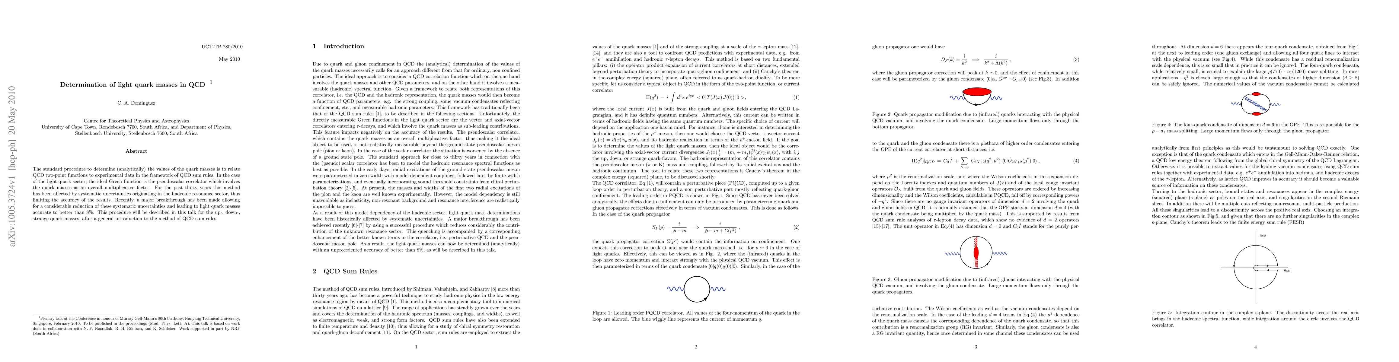 This paper discusses a refined method for determining the light quark masses (up, down, and strange) using QCD sum rules, significantly reducing systematic uncertainties and improving accuracy to better than 8%. The method involves analyzing pseudoscalar correlators and relates QCD two-point functions to experimental data.