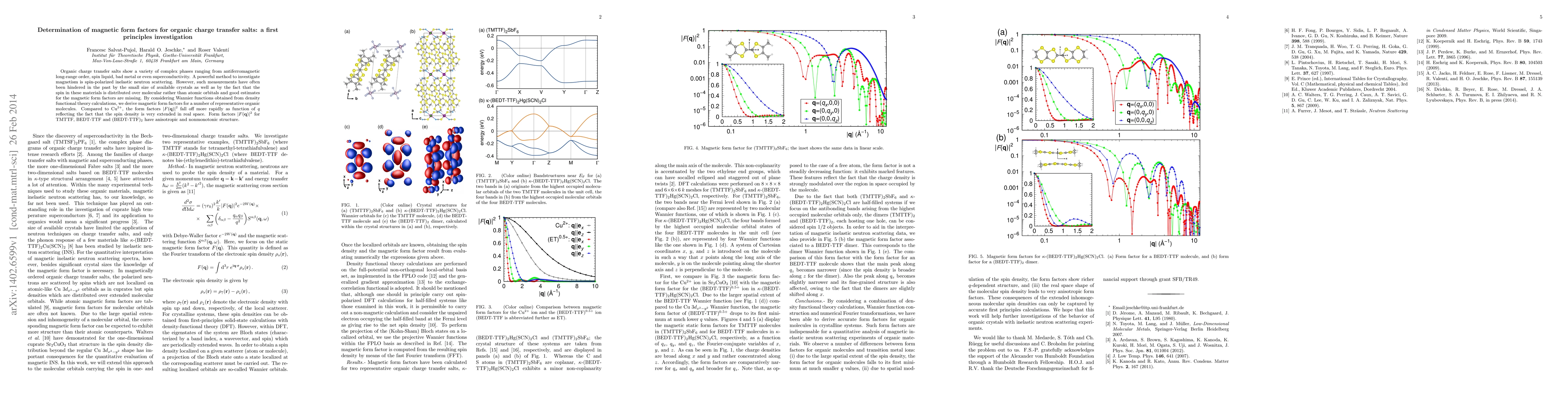 Organic charge transfer salts show a variety of complex phases ranging from antiferromagnetic long-range order, spin liquid, bad metal or even superconductivity. A powerful method to investigate magnetism is spin-polarized inelastic neutron scattering. However, such measurements have often been hindered in the past by the small size of available crystals as well as by the fact that the spin in these materials is distributed over molecular rather than atomic orbitals and good estimates for the magnetic form factors are missing. By considering Wannier functions obtained from density functional theory calculations, we derive magnetic form factors for a number of representative organic molecules. Compared to Cu2+, the form factors |F(q)|2 fall off more rapidly as function of q reflecting the fact that the spin density is very extended in real space. Form factors |F(q)|2 for TMTTF, BEDT-TTF and (BEDT-TTF)2 have anisotropic and nonmonotonic structure.