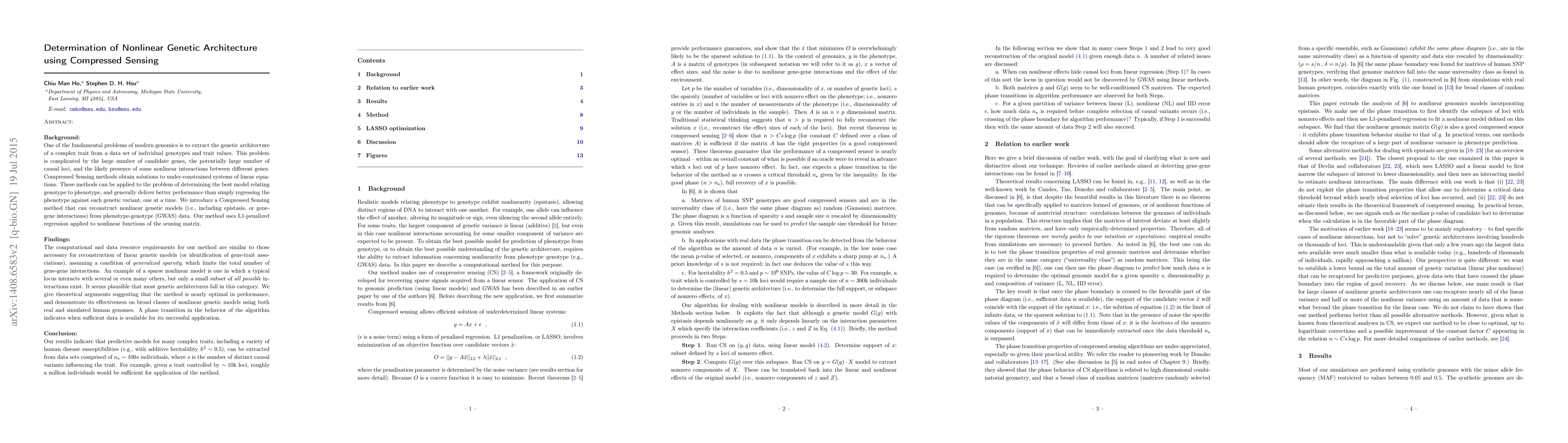This paper presents a novel statistical method to reconstruct complex genetic models, including gene-gene interactions, from phenotype-genotype data. Utilizing a compressed sensing approach with L1-penalized regression on nonlinear functions, the method is efficient and effective for identifying sparse genetic architectures, which are likely common in human genomes.