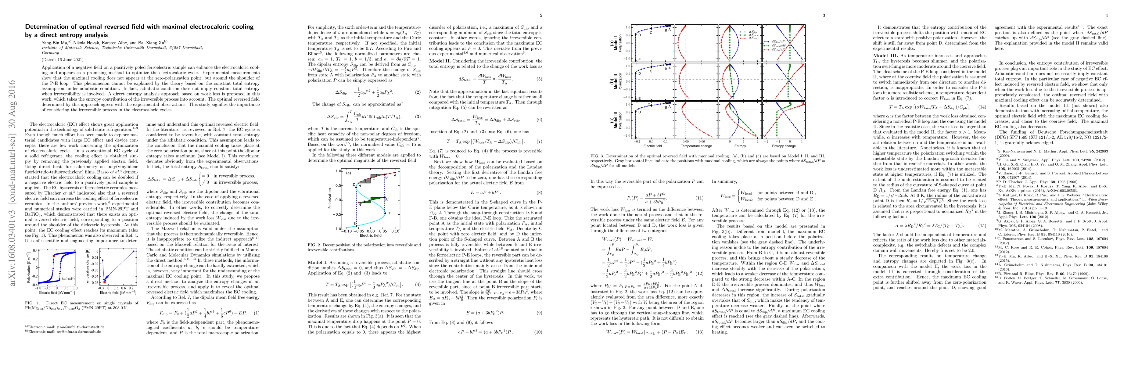 This paper proposes a direct entropy analysis approach to determine the optimal reversed field for maximal electrocaloric cooling in ferroelectric materials, revealing that maximal cooling occurs near the shoulder of the P-E loop rather than at zero polarization. This approach considers entropy contributions from irreversible processes, aligning with experimental observations.