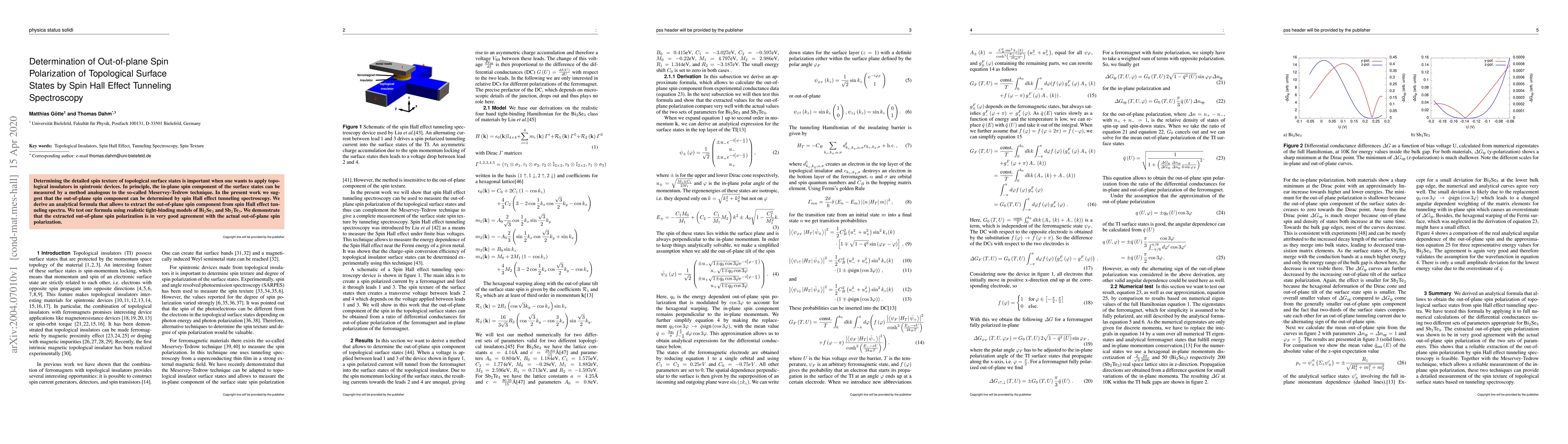Researchers develop a method to measure out-of-plane spin polarization in topological surface states using spin Hall effect tunneling spectroscopy, achieving agreement with actual data in realistic models of Bi2Se3 and Sb2Te3.