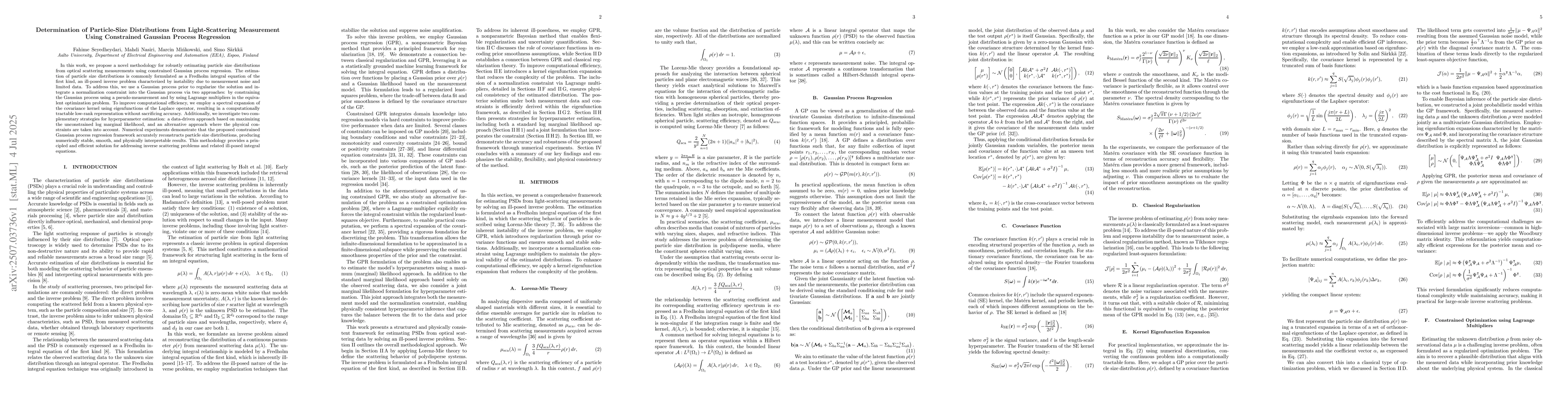 This research introduces a new method using constrained Gaussian process regression to accurately estimate particle size distributions from optical scattering measurements, addressing the challenges of ill-posed inverse problems through regularization and computational efficiency.