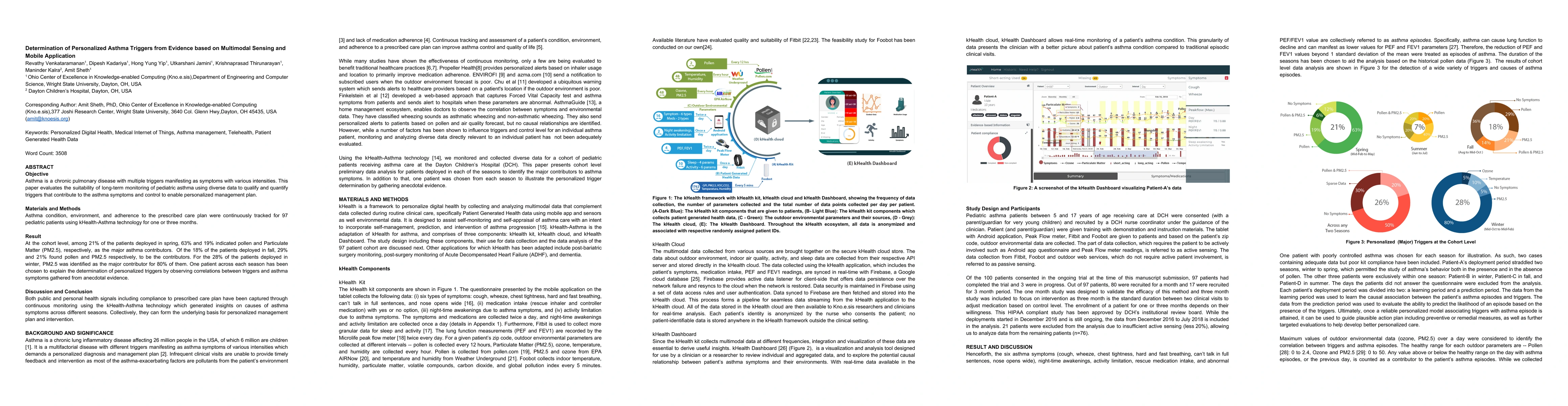 This study uses multimodal sensing and a mobile application to monitor pediatric asthma, identifying personalized triggers like pollen and PM2.5 across different seasons. Continuous tracking of health signals and adherence to care plans provides insights for personalized asthma management.