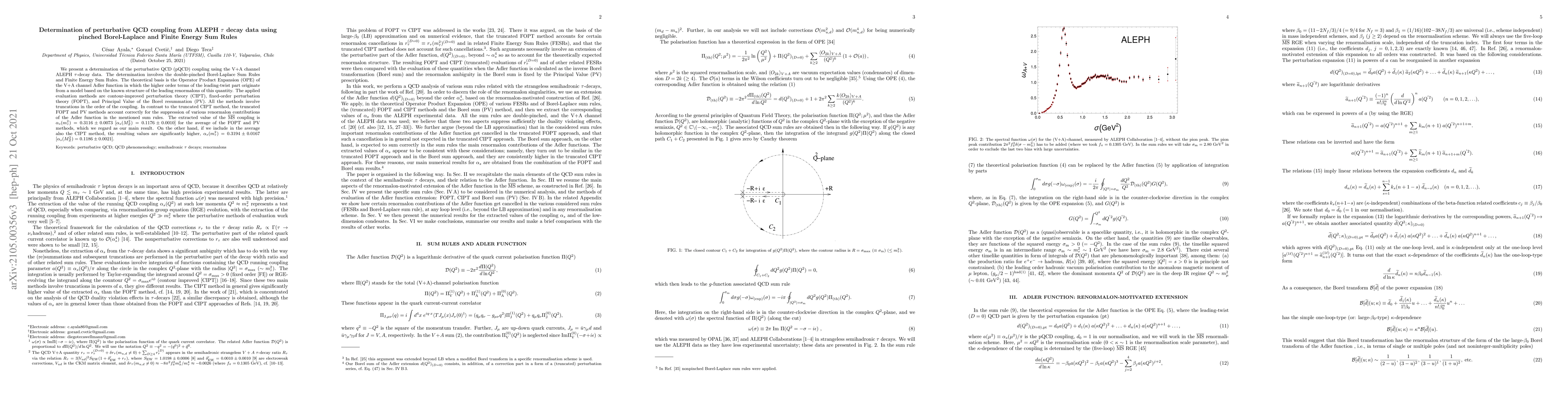 This paper determines the perturbative QCD coupling $\alpha_s$ using ALEPH $\tau$-decay data via double-pinched Borel-Laplace and Finite Energy Sum Rules, yielding $\alpha_s(m_{\tau}^2) = 0.3116 \pm 0.0073$ when averaging fixed-order and Principal Value methods, but higher values when including contour-improved perturbation theory.