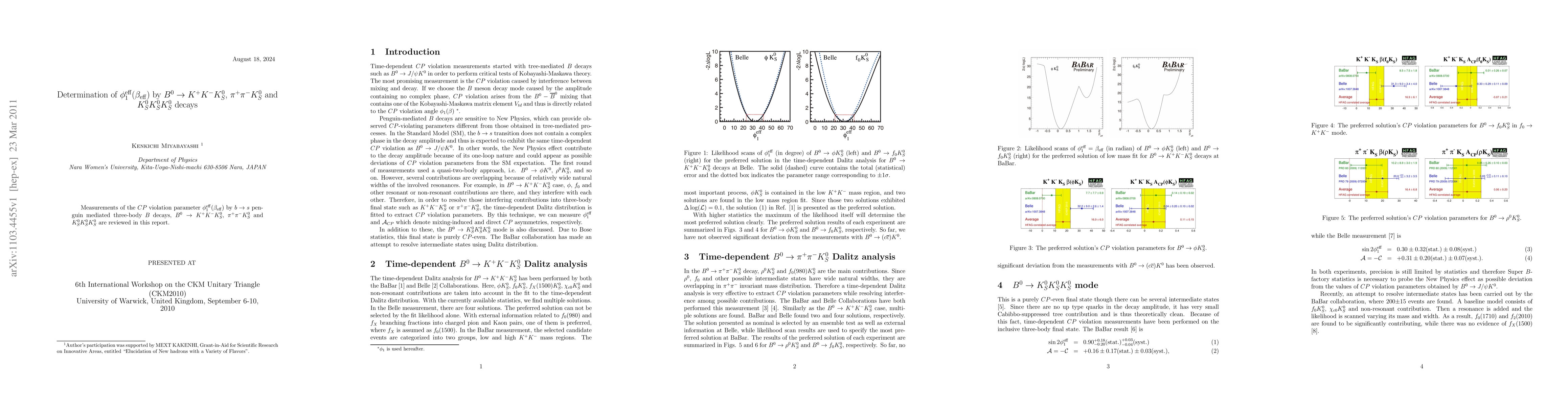 Researchers reviewed measurements of CP violation parameter phi1_eff (beta_eff) in b -> s penguin mediated three-body B decays, aiming to determine its value.