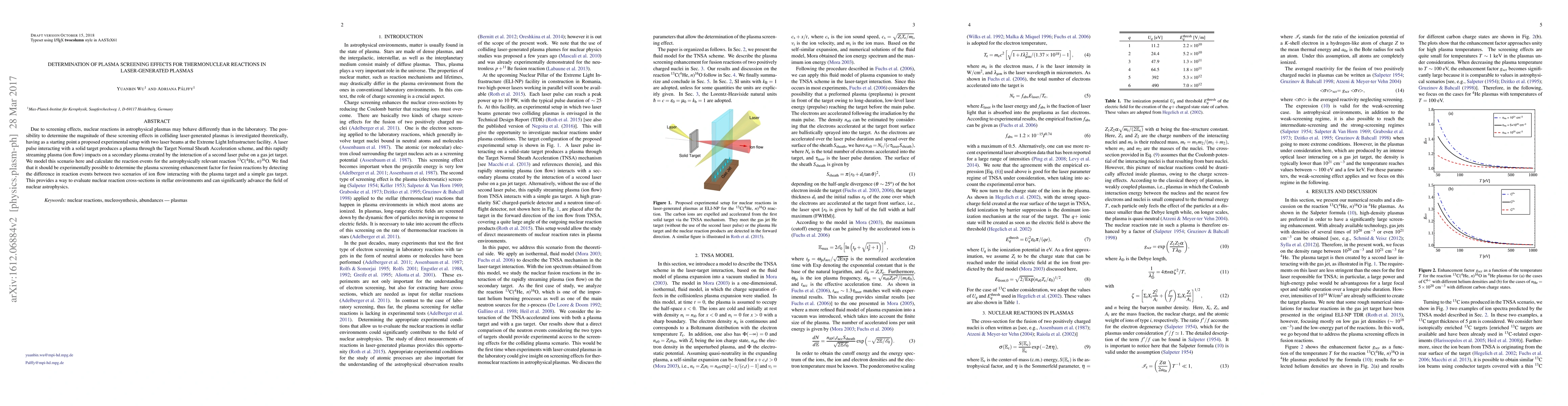 Due to screening effects, nuclear reactions in astrophysical plasmas may behave differently than in the laboratory. The possibility to determine the magnitude of these screening effects in colliding laser-generated plasmas is investigated theoretically, having as a starting point a proposed experimental setup with two laser beams at the Extreme Light Infrastructure facility. A laser pulse interacting with a solid target produces a plasma through the Target Normal Sheath Acceleration scheme, and this rapidly streaming plasma (ion flow) impacts on a secondary plasma created by the interaction of a second laser pulse on a gas jet target. We model this scenario here and calculate the reaction events for the astrophysically relevant reaction $^{13}$C($^4$He, $n$)$^{16}$O. We find that it should be experimentally possible to determine the plasma screening enhancement factor for fusion reactions by detecting the difference in reaction events between two scenarios of ion flow interacting with the plasma target and a simple gas target. This provides a way to evaluate nuclear reaction cross-sections in stellar environments and can significantly advance the field of nuclear astrophysics.