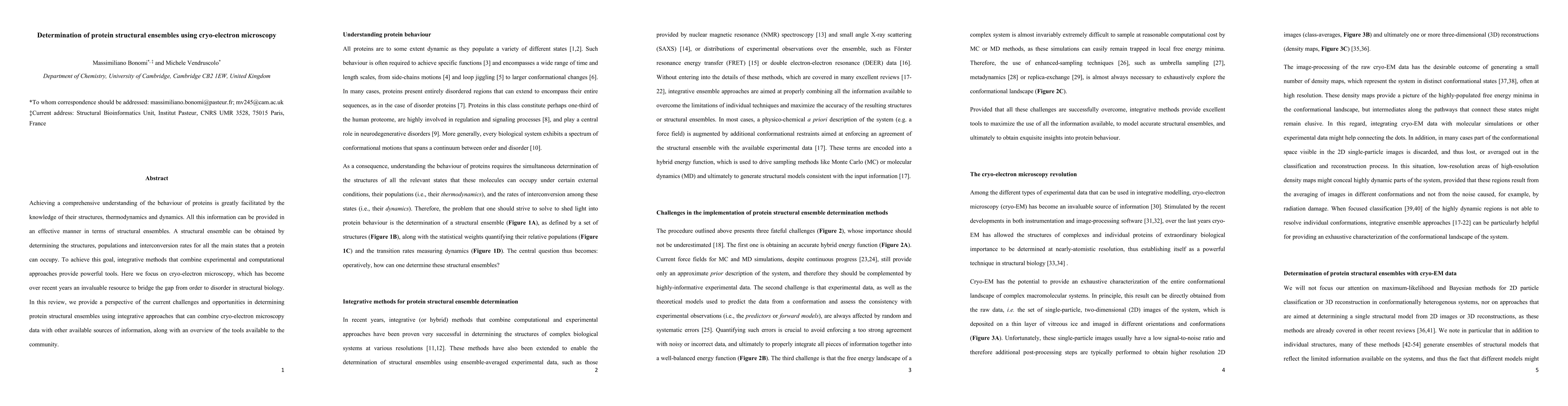 This paper explores the use of cryo-electron microscopy (cryo-EM) to determine protein structural ensembles, highlighting the integration of experimental and computational methods to understand protein dynamics. It reviews current challenges and opportunities in this field, along with available tools for researchers.