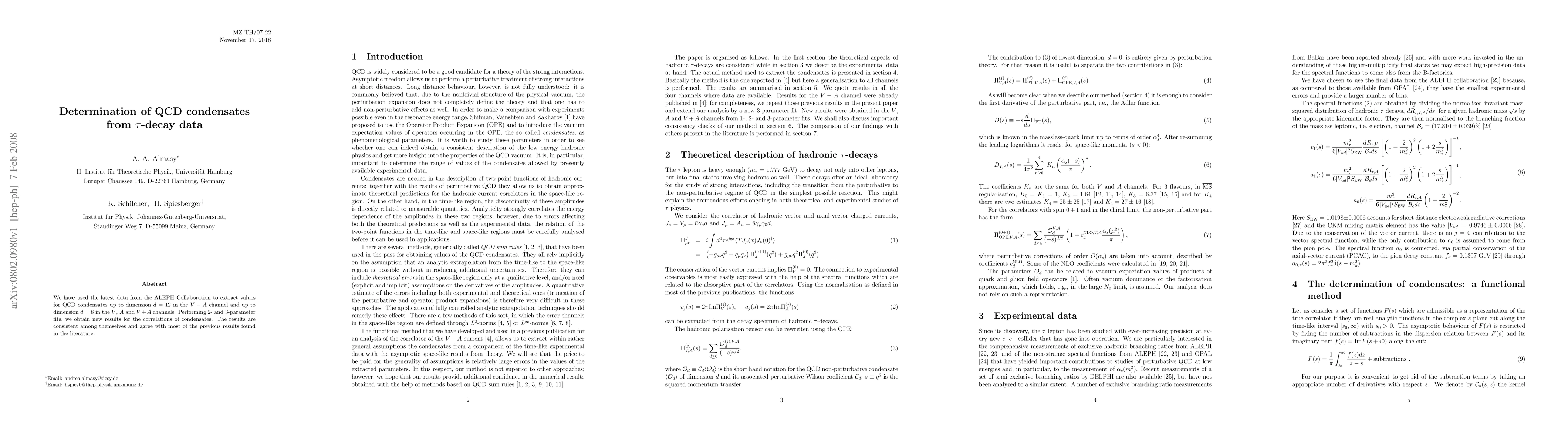 Researchers used tau-decay data to extract QCD condensate values up to dimension d=12 and d=8 in different channels, obtaining consistent results that agree with previous literature.