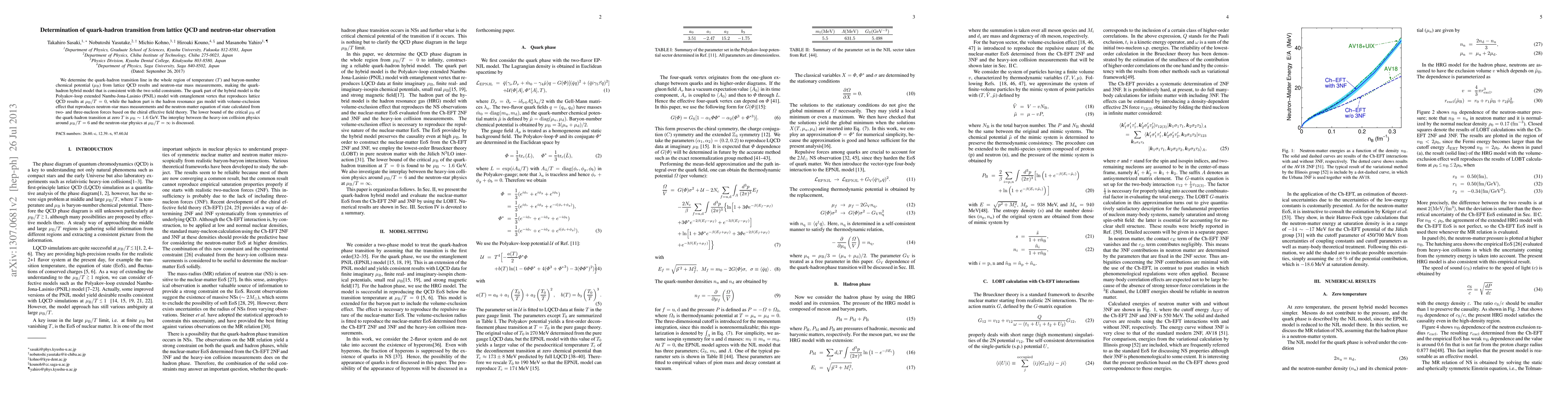 This paper determines the quark-hadron transition line using lattice QCD and neutron-star mass observations, combining the PNJL model for quarks and the hadron resonance gas model for hadrons. The critical baryon-number chemical potential for the transition at zero temperature is found to be 1.6 GeV.