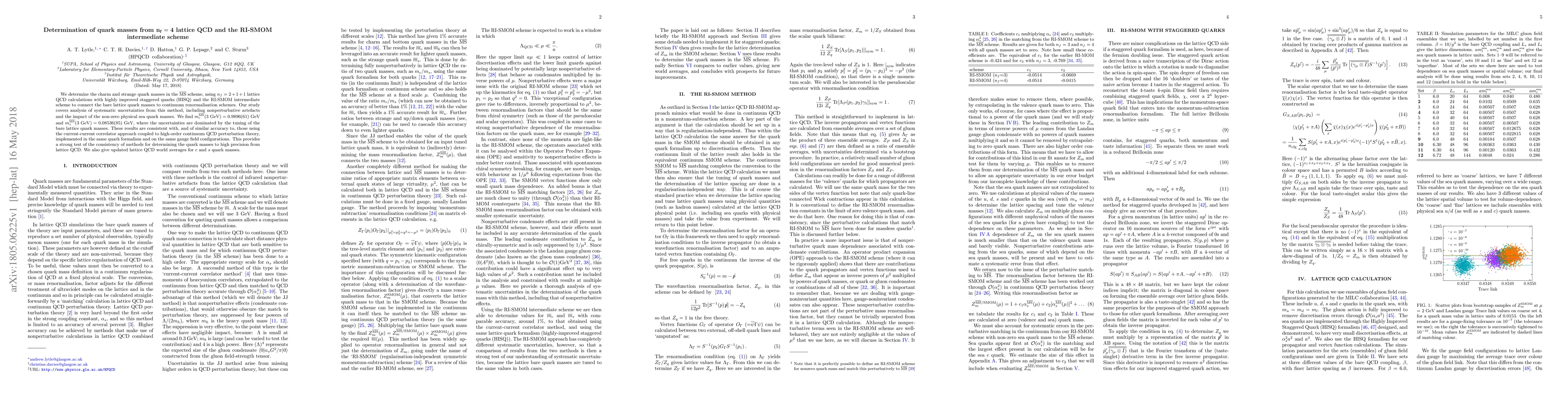 This paper determines the charm and strange quark masses using $n_f=2+1+1$ lattice QCD calculations with HISQ and the RI-SMOM scheme, finding $m_c^{\overline{\text{MS}}}(3 \text{GeV}) = 0.9896(61)$ GeV and $m_s^{\overline{\text{MS}}}(3 \text{GeV}) = 0.08536(85)$ GeV, and provides a consistency test with other high-precision methods.