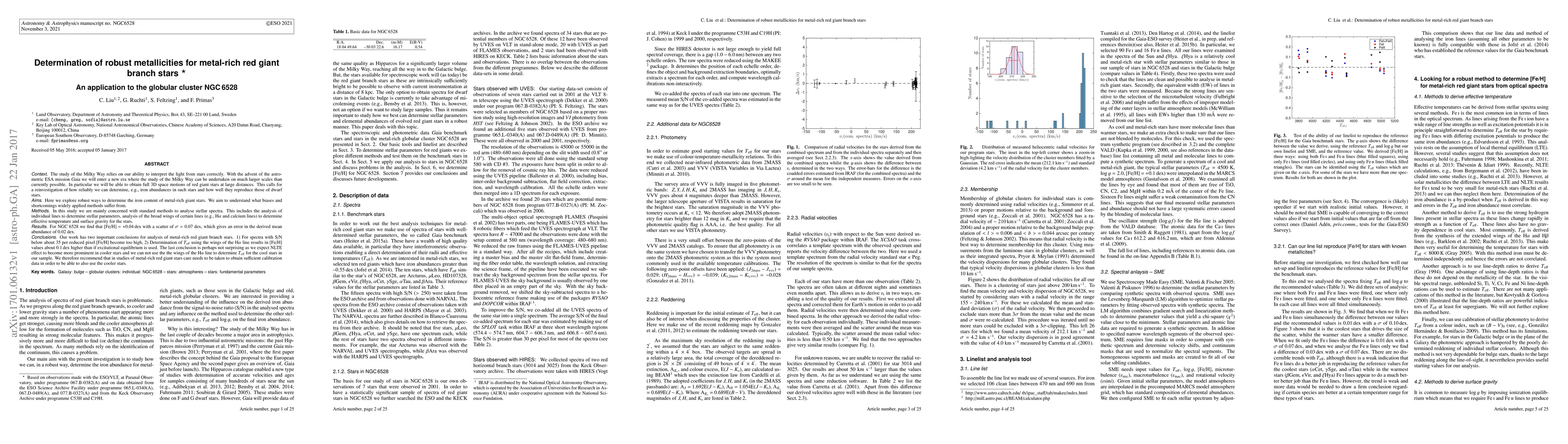 The study of the Milky Way relies on our ability to interpret the light from stars correctly. This calls for a reinvestigation of how reliably we can determine, e.g., iron abundances in such stars and how well they reproduce those of dwarf stars. Here we explore robust ways to determine the iron content of metal-rich giant stars. We aim to understand what biases and shortcomings widely applied methods suffer from. In this study we are mainly concerned with standard methods to analyse stellar spectra. This includes the analysis of individual lines to determine stellar parameters, analysis of the broad wings of certain lines (e.g., H$\alpha$ and calcium lines) to determine effective temperature and surface gravity for the stars. For NGC 6528 we find that [Fe/H] = $+0.04$ dex with a scatter of $\sigma=0.07$ dex, which gives an error in the derived mean abundance of 0.02 dex. Our work has two important conclusions for analysis of metal-rich red giant branch stars. 1) For spectra with S/N below about 35 per reduced pixel [Fe/H] become too high, 2) Determination of $T_{\rm eff}$ using the wings of the H$\alpha$ line results in [Fe/H] values about 0.1 dex higher than if excitational equilibrium is used. The last conclusion is perhaps not surprising as we expect NLTE effect to become more prominent in cooler stars and we can not use the the wings of the H$\alpha$ line to determine $T_{\rm eff}$ for the cool stars in our sample. We therefore recommend that in studies of metal-rich red giant stars care needs to be taken to obtain sufficient calibration data in order to be able to also use the cooler stars.