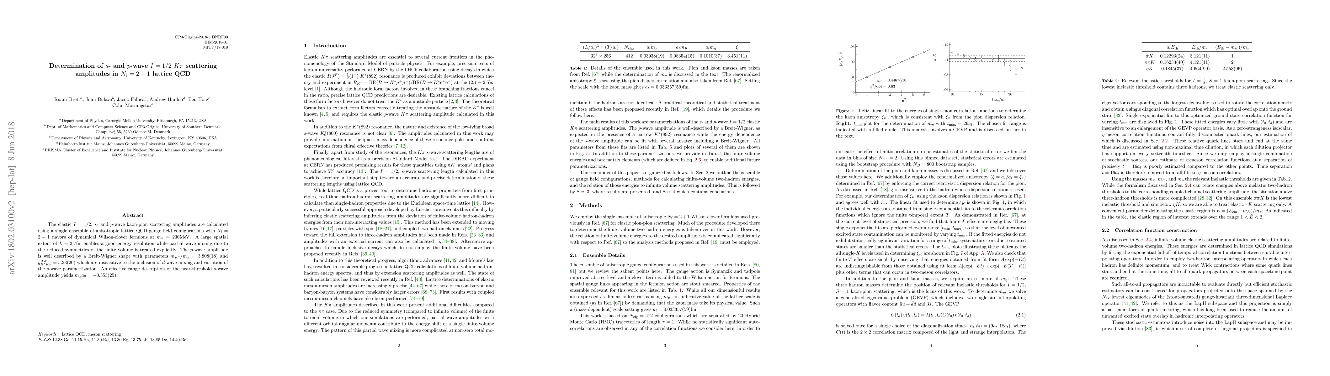 This paper calculates $I=1/2$, $s$- and $p$-wave kaon-pion scattering amplitudes in $N_{\mathrm{f}}=2+1$ lattice QCD using anisotropic gauge field configurations. The $p$-wave amplitude is modeled by a Breit-Wigner shape, while the $s$-wave amplitude is described by an effective range, providing insights into their underlying dynamics.