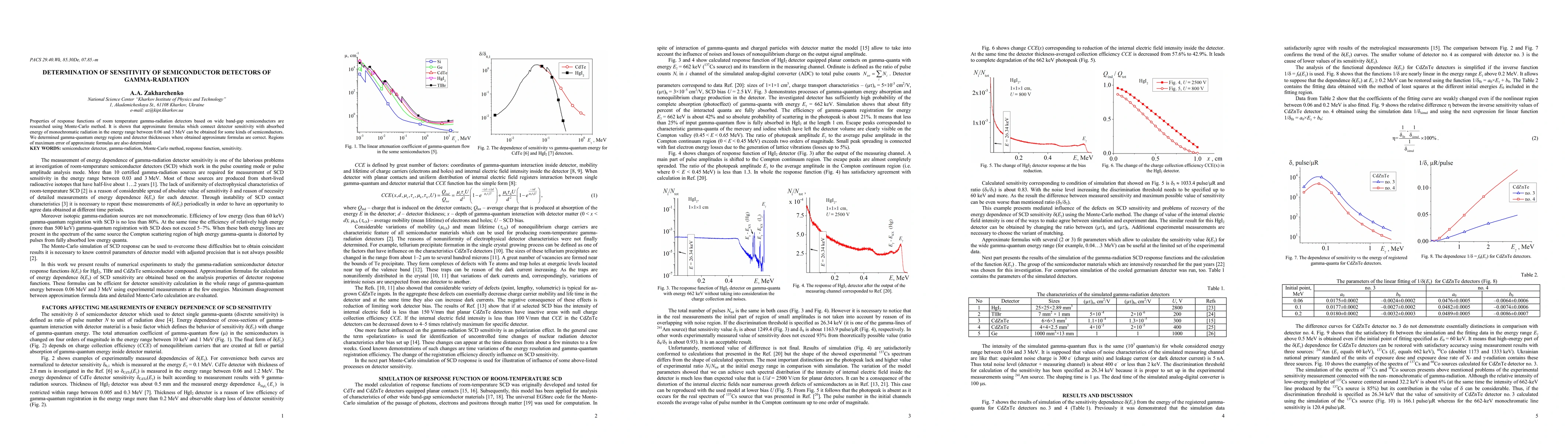 Properties of response functions of room temperature gamma-radiation detectors based on wide band-gap semiconductors are researched using Monte-Carlo method. It is shown that approximate formulas which connect detector sensitivity with absorbed energy of monochromatic radiation in the energy range between 0.06 and 3 MeV can be obtained for some kinds of semiconductors. We determined gamma-quantum energy regions and detector thicknesses where obtained approximate formulas are correct. Regions of maximum error of approximate formulas are also determined.
