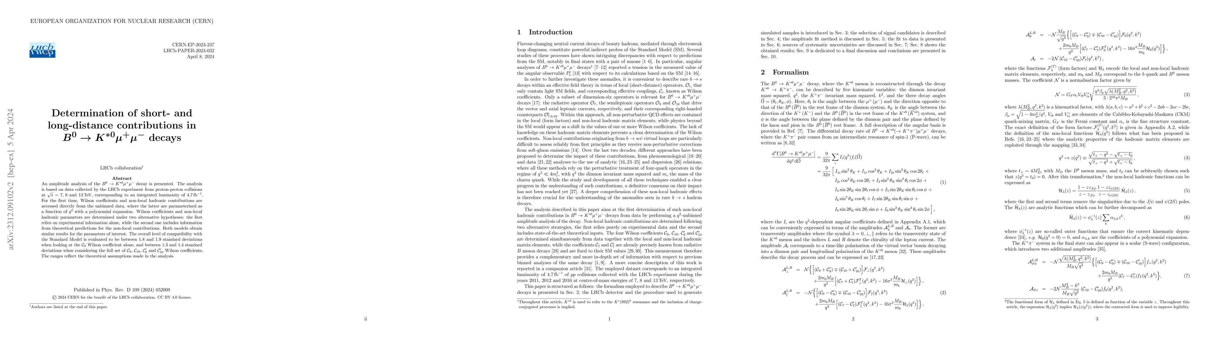 This study analyzes $B^0 \to K^{*0} \mu^+\mu^-$ decays using LHCb data to determine Wilson coefficients and non-local hadronic contributions, finding compatibility with the Standard Model within 1.3-1.9 standard deviations. Both experimental and theoretical-informed models yield similar results.