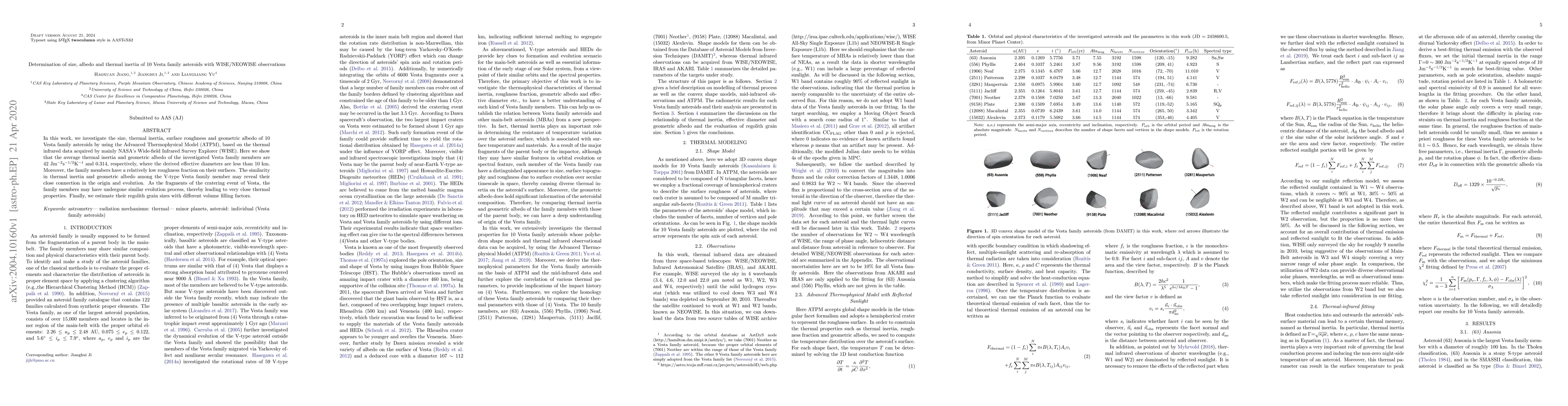This study uses WISE/NEOWISE thermal infrared data to determine the size, thermal inertia, and geometric albedo of 10 Vesta family asteroids, finding average values of 42 J m^-2 s^-1/2 K^-1 for thermal inertia and 0.314 for geometric albedo, indicating a close evolutionary connection among these asteroids.