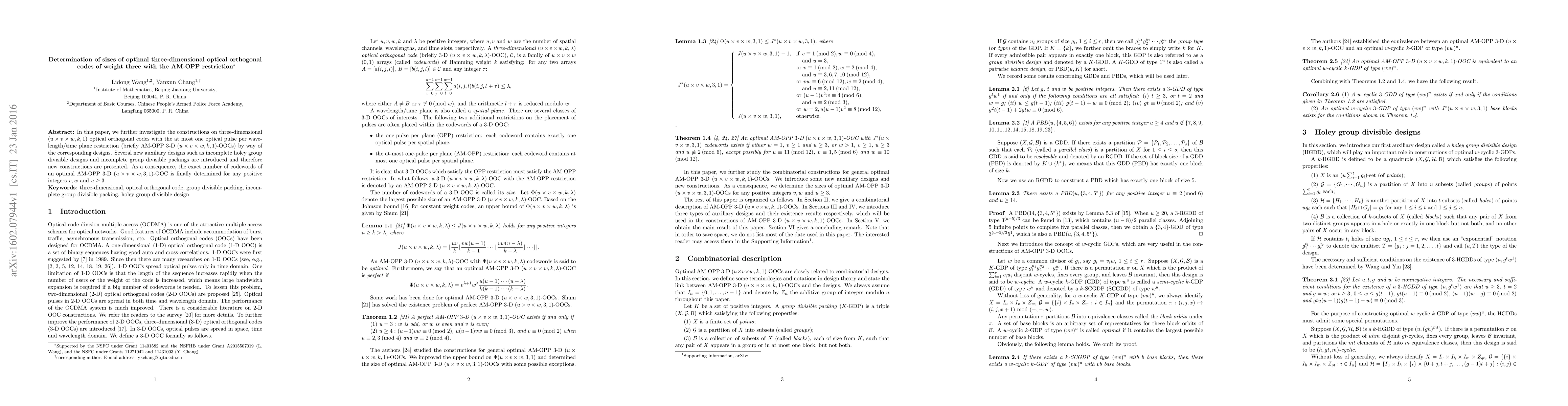 In this paper, we further investigate the constructions on three-dimensional $(u\times v\times w,k,1)$ optical orthogonal codes with the at most one optical pulse per wavelength/time plane restriction (briefly AM-OPP $3$-D $(u\times v\times w,k,1)$-OOCs) by way of the corresponding designs. Several new auxiliary designs such as incomplete holey group divisible designs and incomplete group divisible packings are introduced and therefore new constructions are presented. As a consequence, the exact number of codewords of an optimal AM-OPP $3$-D $(u\times v\times w,3,1)$-OOC is finally determined for any positive integers $v,w$ and $u\geq3$.