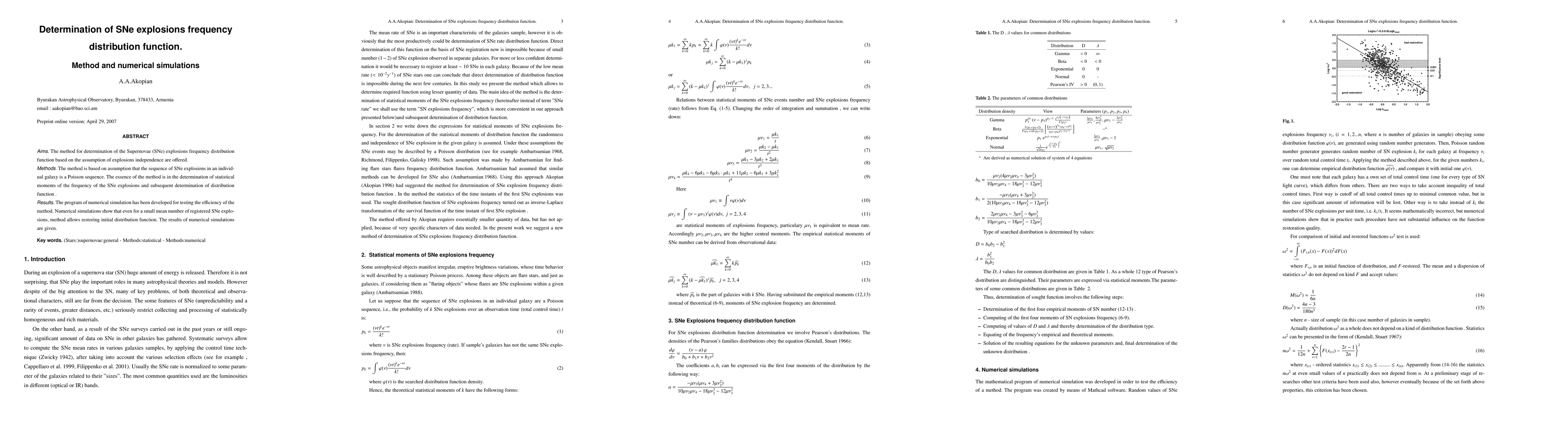 This paper proposes a method to determine the frequency distribution function of Supernovae (SNe) explosions based on the assumption of explosion independence and a Poisson sequence. The method involves calculating statistical moments to derive the distribution function, and numerical simulations confirm its effectiveness even with a small number of recorded SNe explosions.