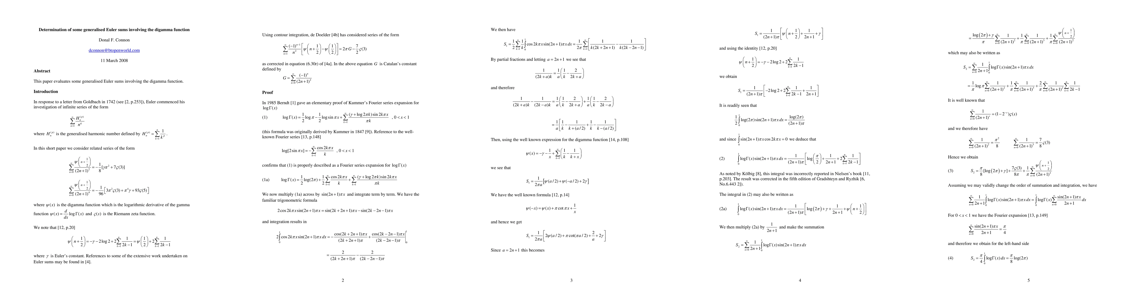 Summary: This paper provides an evaluation of generalised Euler sums that incorporate the digamma function, contributing to the understanding of their analytical properties and potential applications.