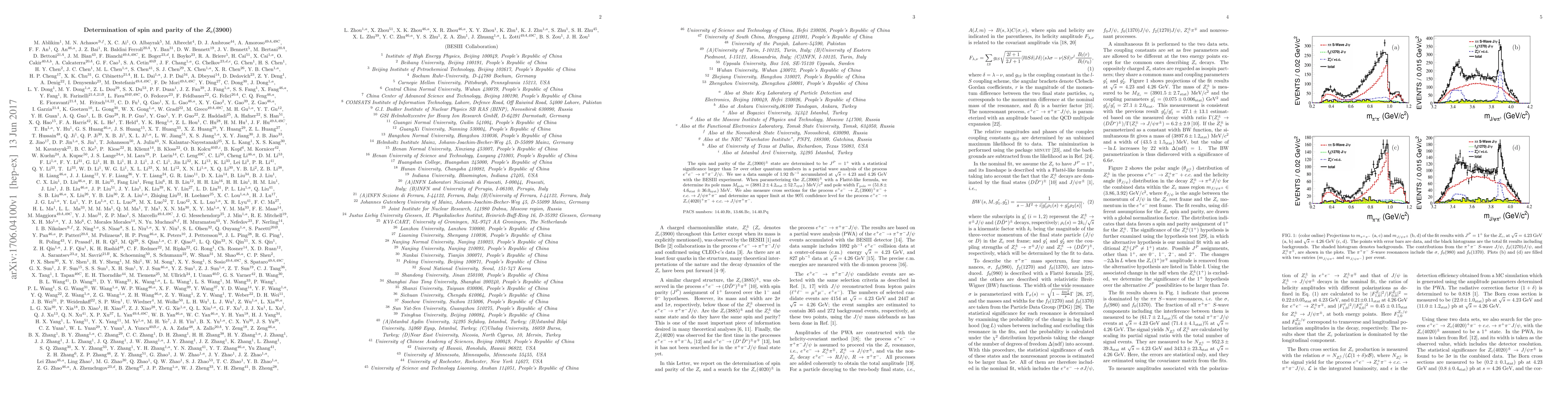 Researchers determine that the $Z_c(3900)$ particle has a spin of 1 and positive parity, with a statistical significance over 7 times greater than other possibilities. The paper also reports its mass and width, as well as upper limits for related processes.