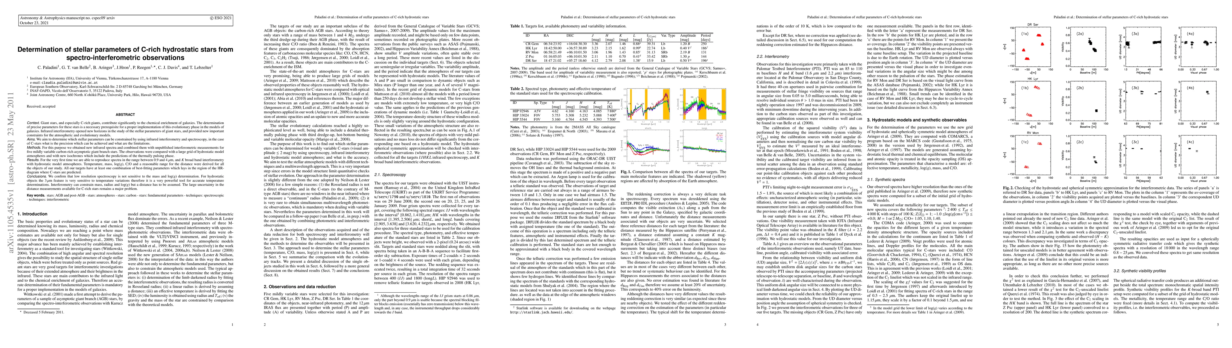 Giant stars, and especially C-rich giants, contribute significantly to the chemical enrichment of galaxies. The determination of precise parameters for these stars is a necessary prerequisite for a proper implementation of this evolutionary phase in the models of galaxies. Infrared interferometry opened new horizons in the study of the stellar parameters of giant stars, and provided new important constraints for the atmospheric and evolutionary models.We aim to determine which stellar parameters can be constrained by using infrared interferometry and spectroscopy, in the case of C-stars what is the precision which can be achieved and what are the limitations. For this purpose we obtained new infrared spectra and combined them with unpublished interferometric measurements for five mildly variable carbon-rich asymptotic giant branch stars. The observations were compared with a large grid of hydrostatic model atmospheres and with new isochrones which include the predictions of the thermally pulsing phase. For the very first time we are able to reproduce spectra in the range between 0.9 and 4 $\mu$m, and $K$ broad band interferometry with hydrostatic model atmospheres. Temperature, mass, log$(g)$, C/O and a reasonable range for the distance were derived for all the objects of our study. All our targets have at least one combination of best-fitting parameters which lays in the region of the HR-diagram where C-stars are predicted. We confirm that low resolution spectroscopy is not sensitive to the mass and log$(g)$ determination. For hydrostatic objects the $3\,\mu$m feature is very sensitive to temperature variations therefore it is a very powerful tool for accurate temperature determinations. Interferometry can constrain mass, radius and log$(g)$ but a distance has to be assumed. The large uncertainty in the distance measurements available for C-rich stars remains a major problem.
