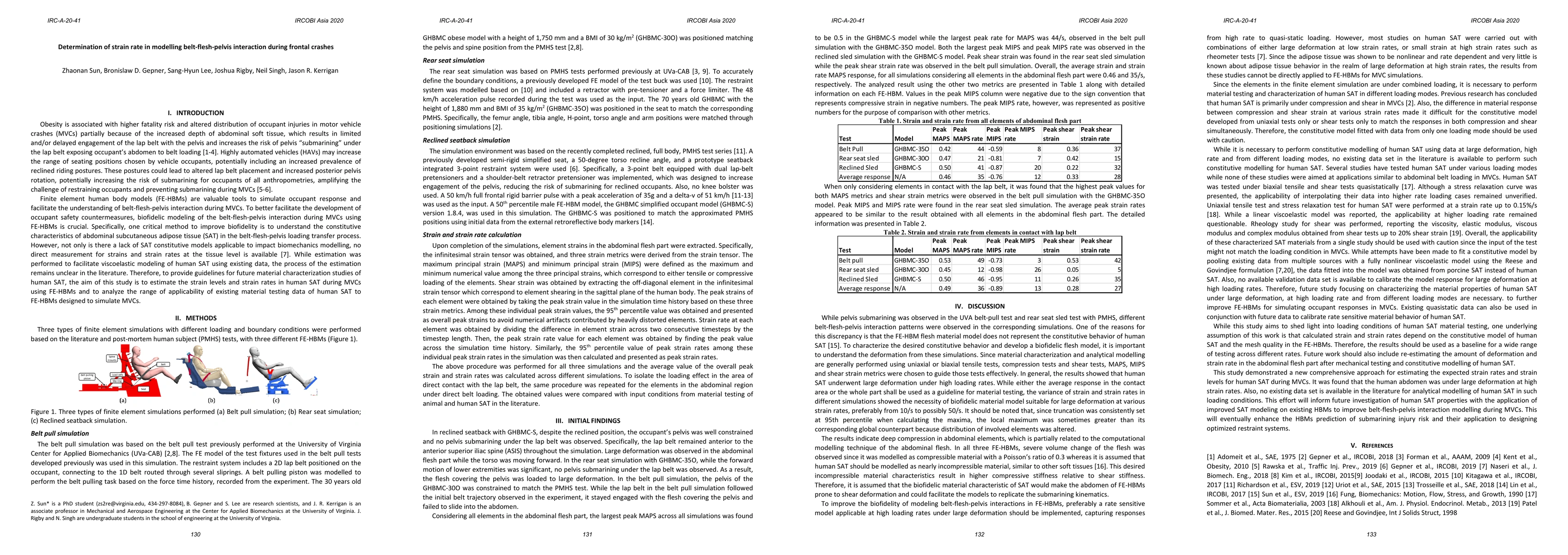 This study investigates how strain rate affects the interaction between the lap belt and the pelvis during frontal crashes, focusing on how obesity alters injury distribution due to delayed engagement and increased abdominal soft tissue depth. The findings aim to improve crash injury modeling for obese occupants.